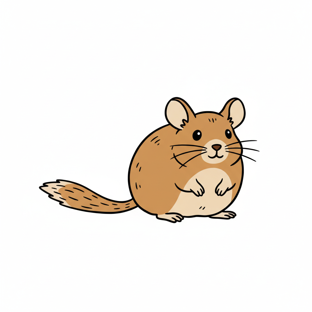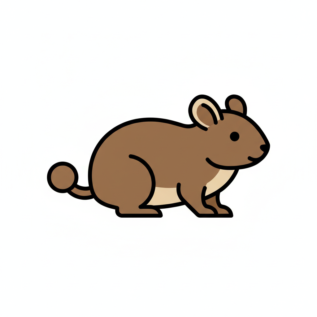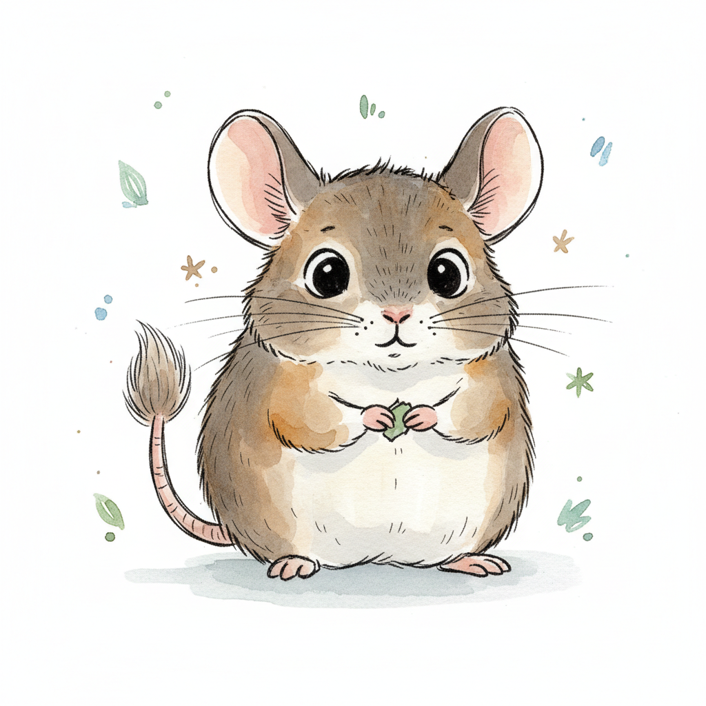 Eine niedliche, cartoonartige Maus mit braunem Fell.