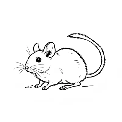 Eine einfache Skizze einer Maus mit langen Ohren und einem langen Schwanz.