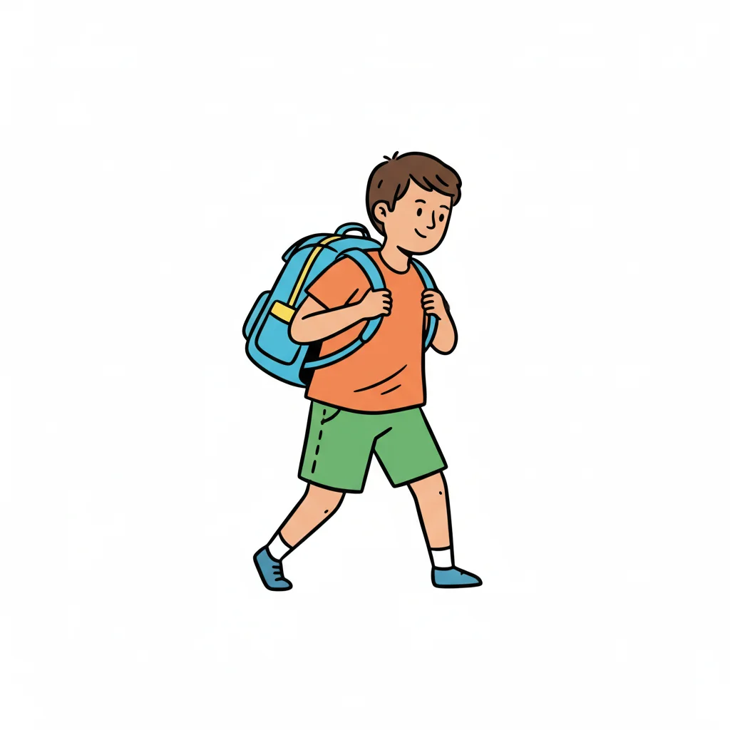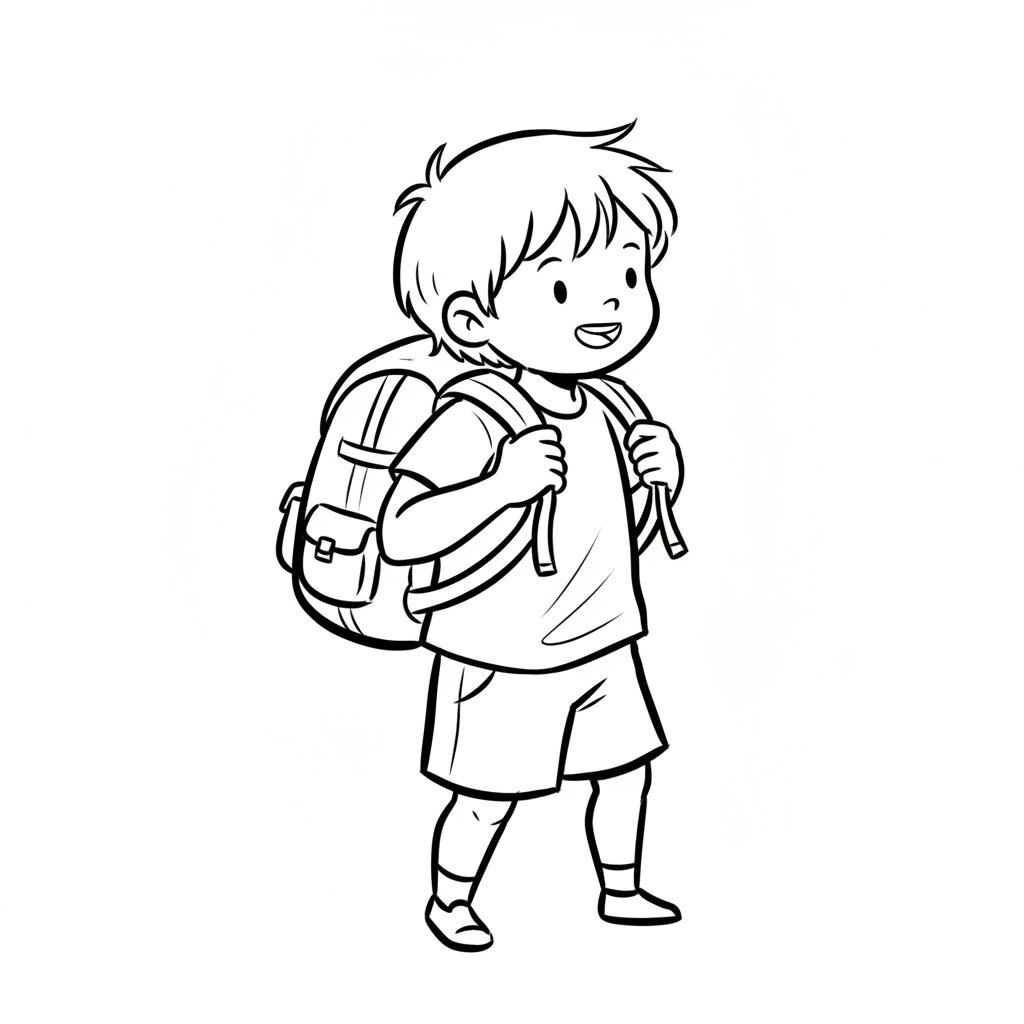 Ein Junge mit Rucksack, lächelnd und bereit für Abenteuer.