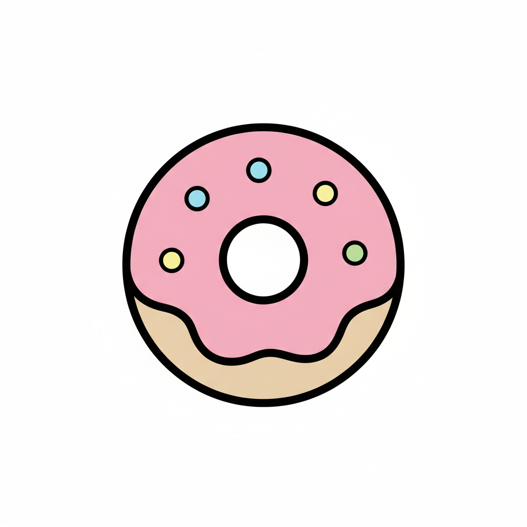 Ein gezeichneter Donut mit rosa Zuckerguss und Streuseln.