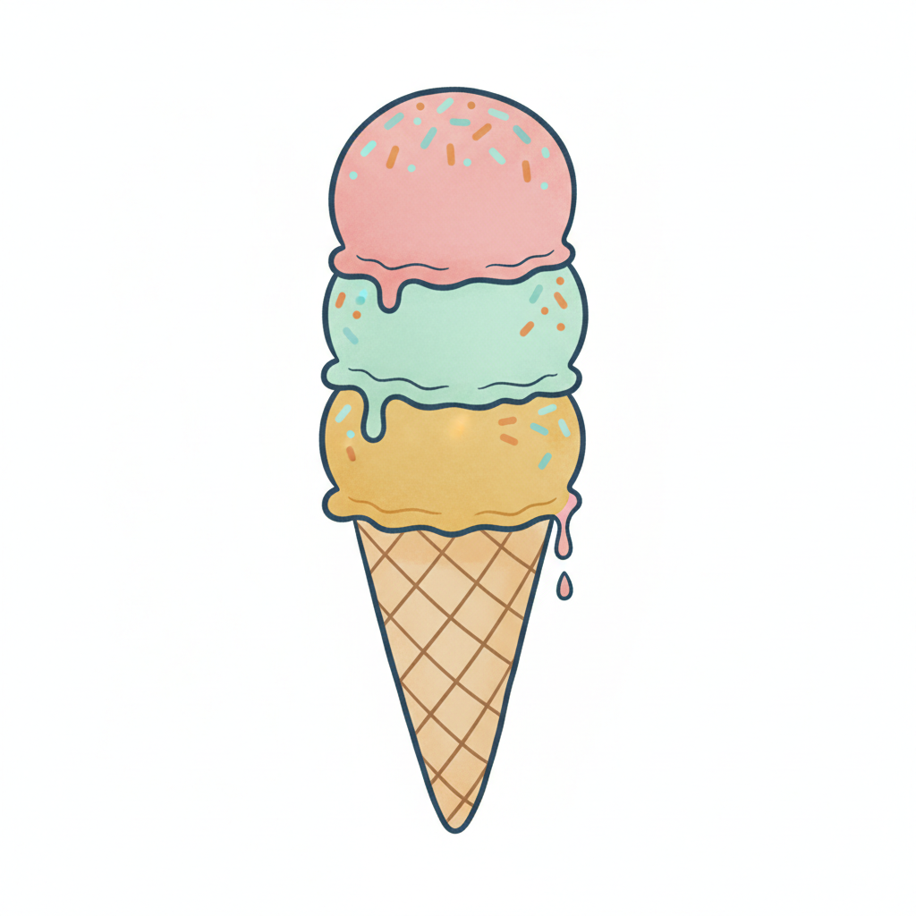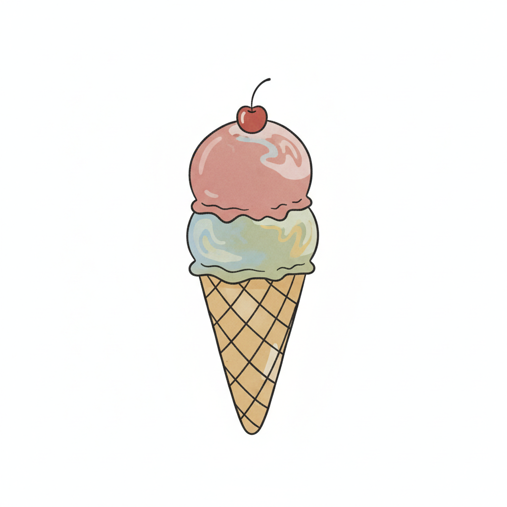 Ein einfaches, handgezeichnetes Eis in einer Waffel.