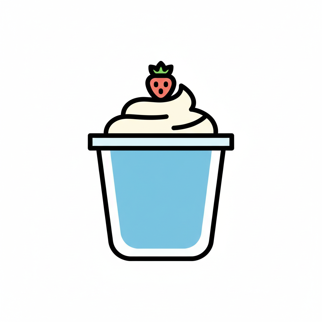 Ein Becher mit Sahne und einer Erdbeere oben drauf.
