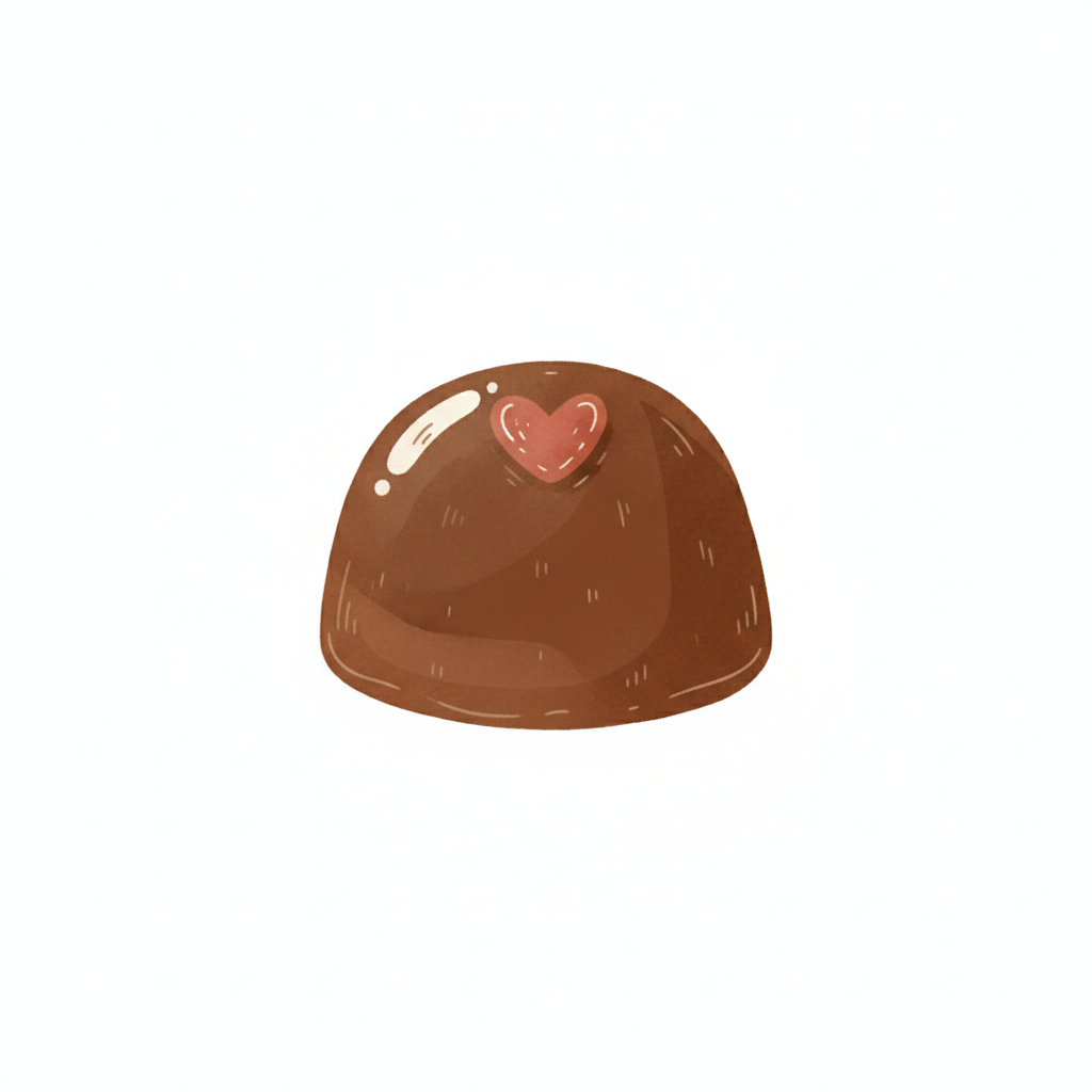 Schokoladenbonbon mit Herzmuster auf der Oberfläche.