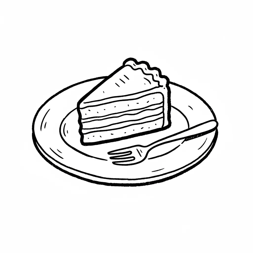 Ein Stück Kuchen auf einem Teller mit einer Gabel daneben.
