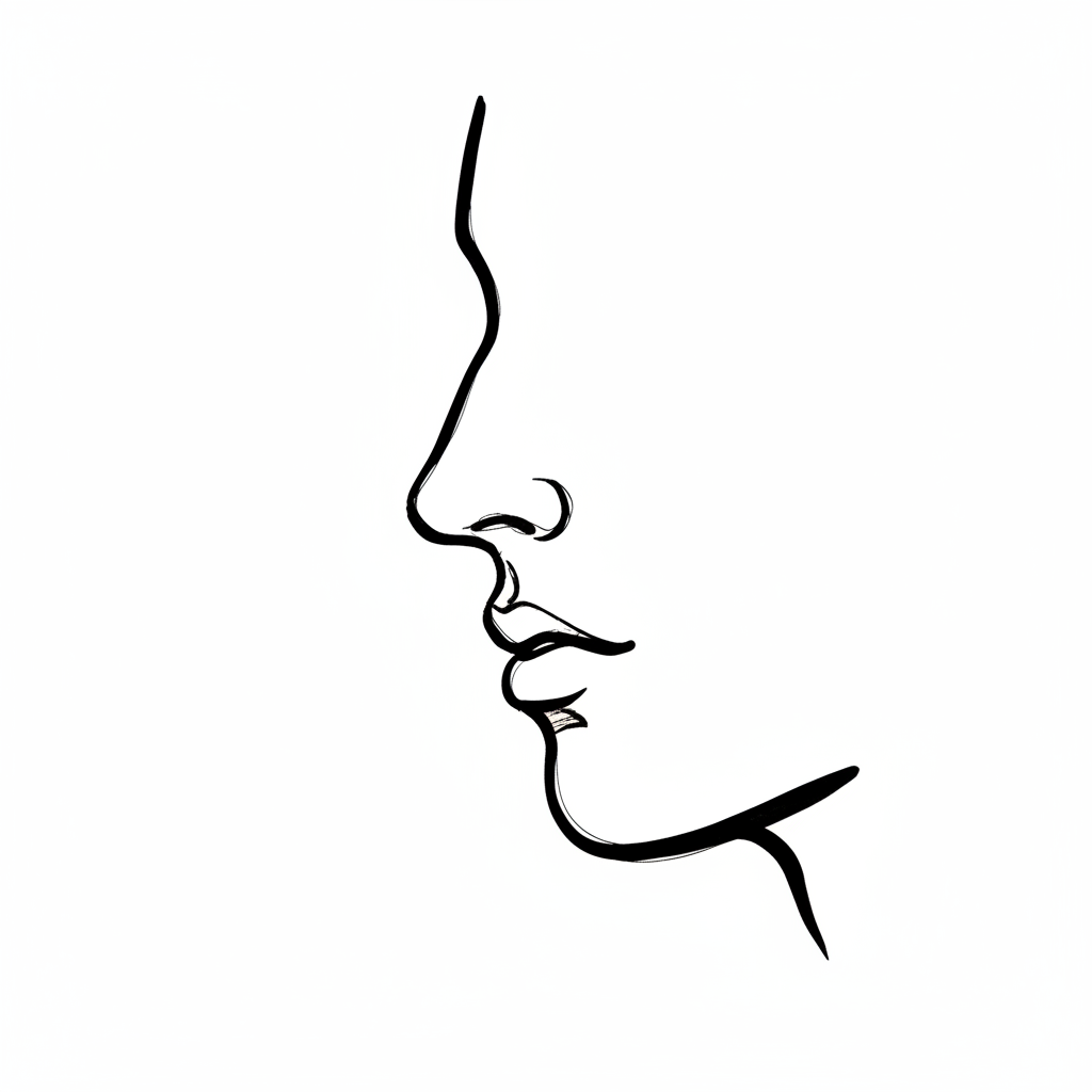 Minimalistische Strichzeichnung eines menschlichen Profils, Nase und Mund sind deutlich erkennbar.