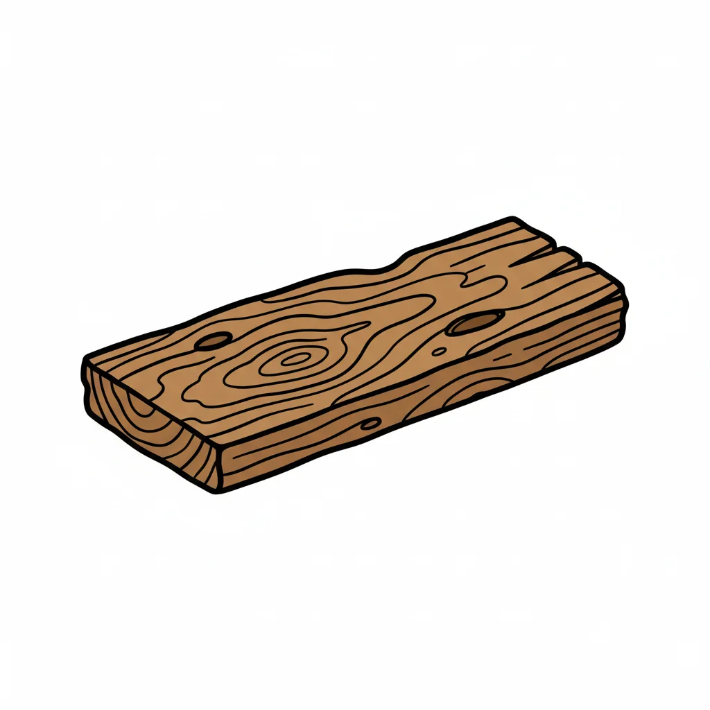 Cartoon-Illustration einer braunen Holzplanke mit deutlicher Maserung und Astlöchern.