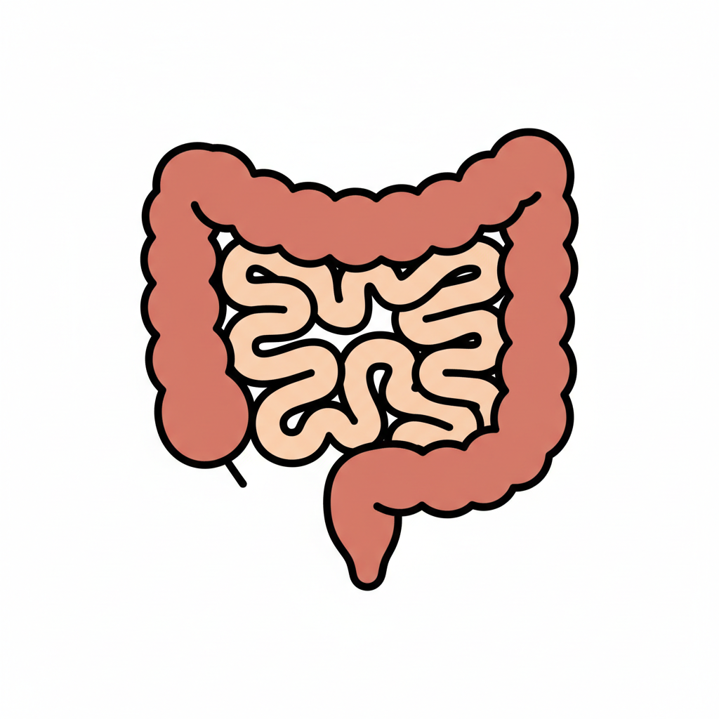 Stilisierte Darstellung des menschlichen Darms, bestehend aus Dick- und Dünndarm.