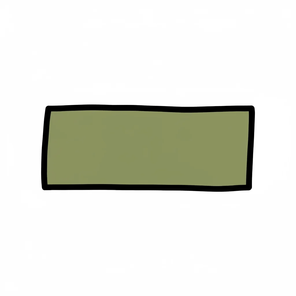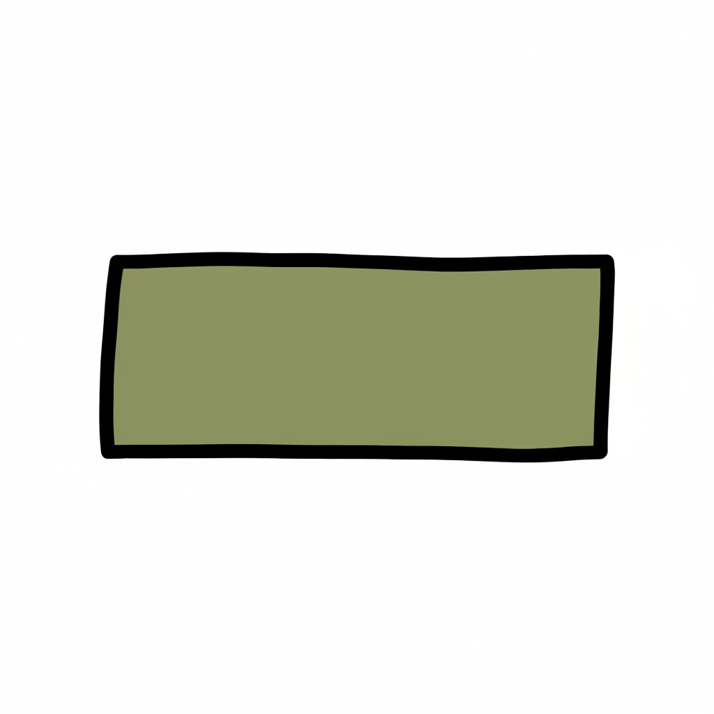 Ein handgezeichnetes, olivgrünes Rechteck mit dicker schwarzer Umrandung auf weißem Hintergrund.