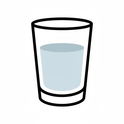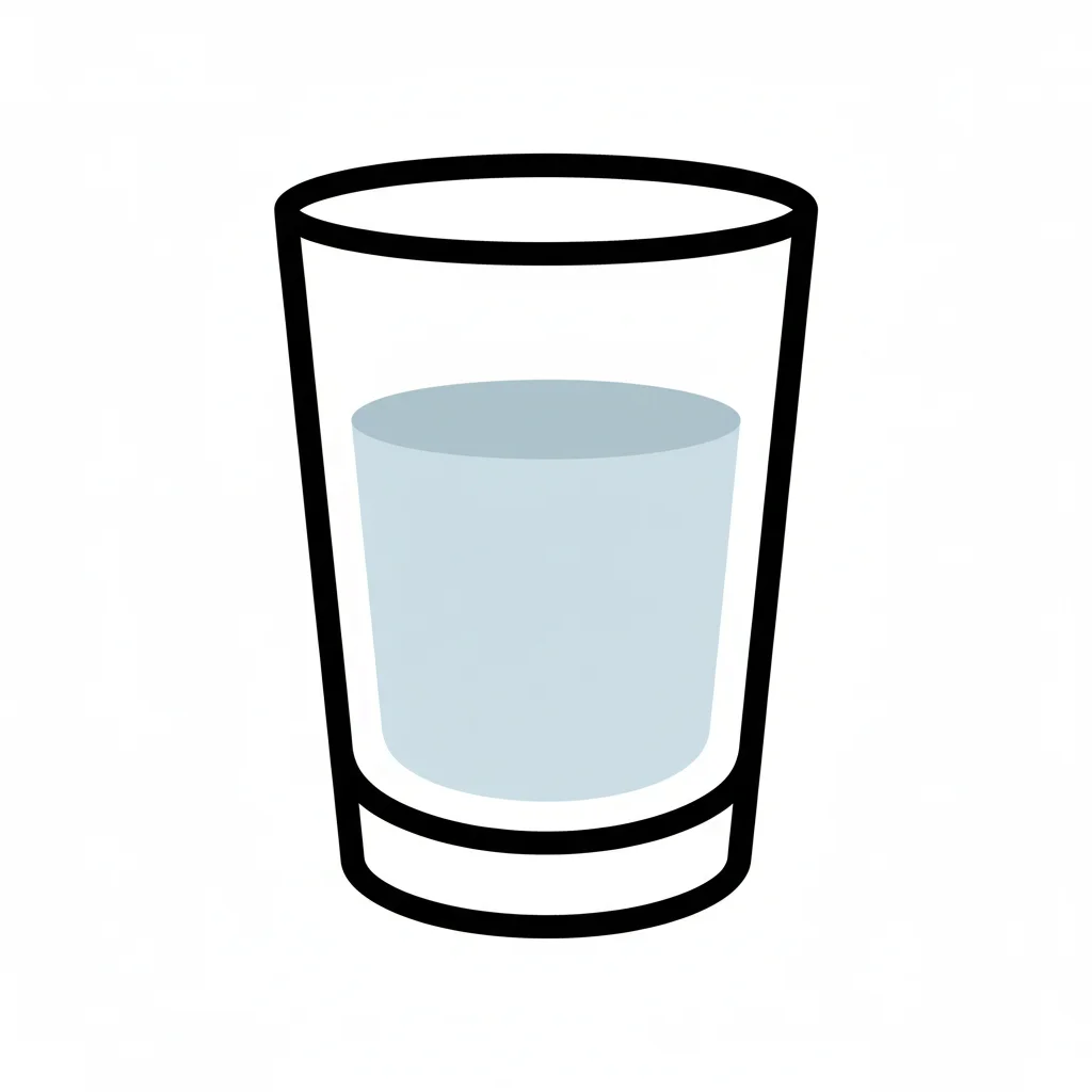 Ein stilisiertes Glas, halb gefüllt mit Wasser, gezeichnet mit dicken schwarzen Umrissen.