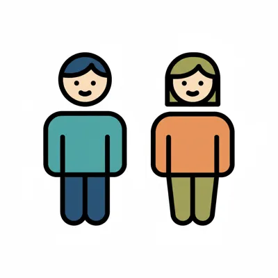 Zwei stilisierte Figuren, Mann und Frau, als bunte Icons mit dicken Umrissen dargestellt.