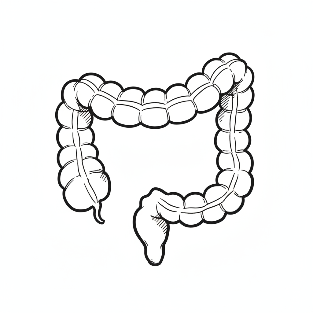Schwarz-weiß-Skizze des menschlichen Dickdarms auf weißem Hintergrund.