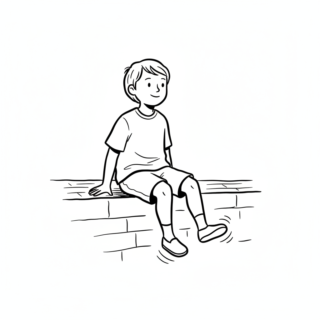 Ein Junge sitzt entspannt auf einer Mauer und genießt den Moment.