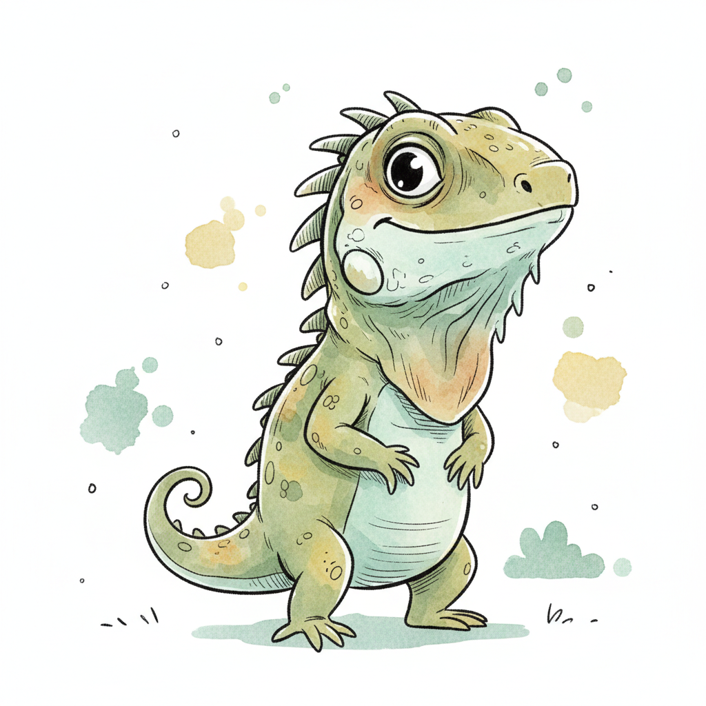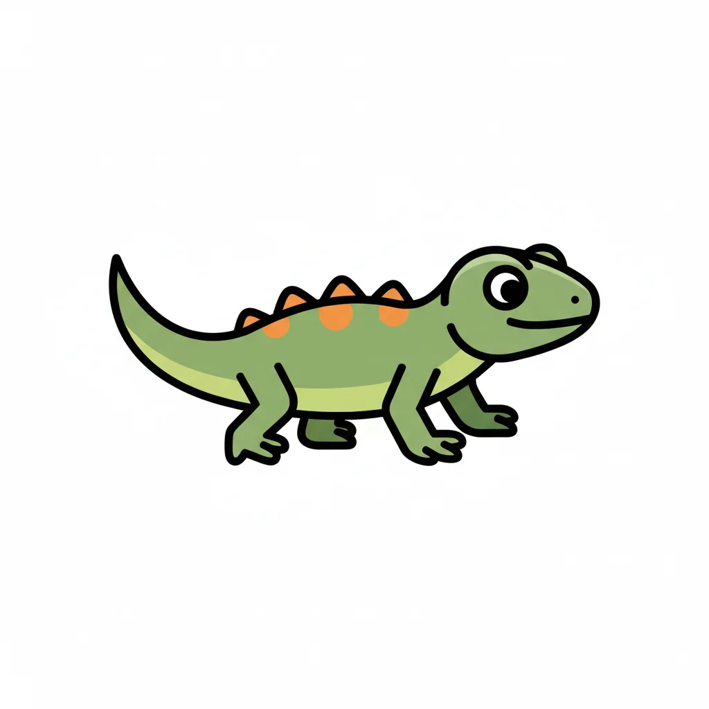 Ein niedliches, cartoonhaftes Dinosaurierwesen mit grüner Haut.