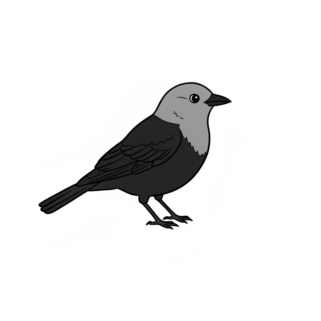 Ein einfacher, gezeichneter Vogel mit grauem Kopf und schwarzem Körper.