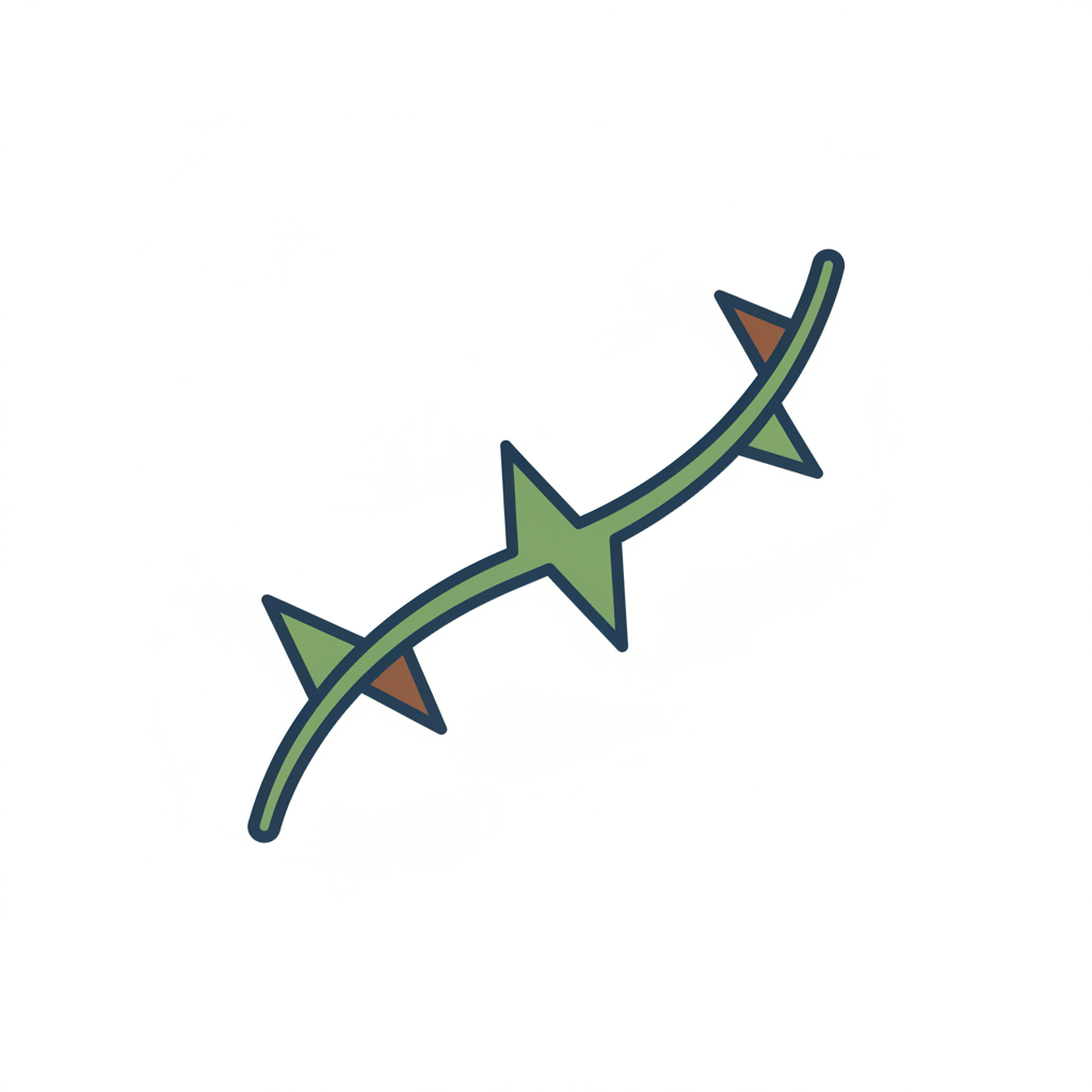 Ein stilisierter, spitzer Dorn mit mehreren scharfen Stacheln.
