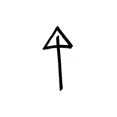 Stilisierter schwarzer Pfeil, der nach oben zeigt, mit einem Kreuz im dreieckigen Kopf auf Weiß.