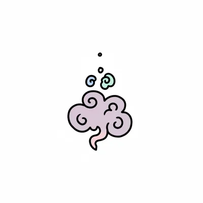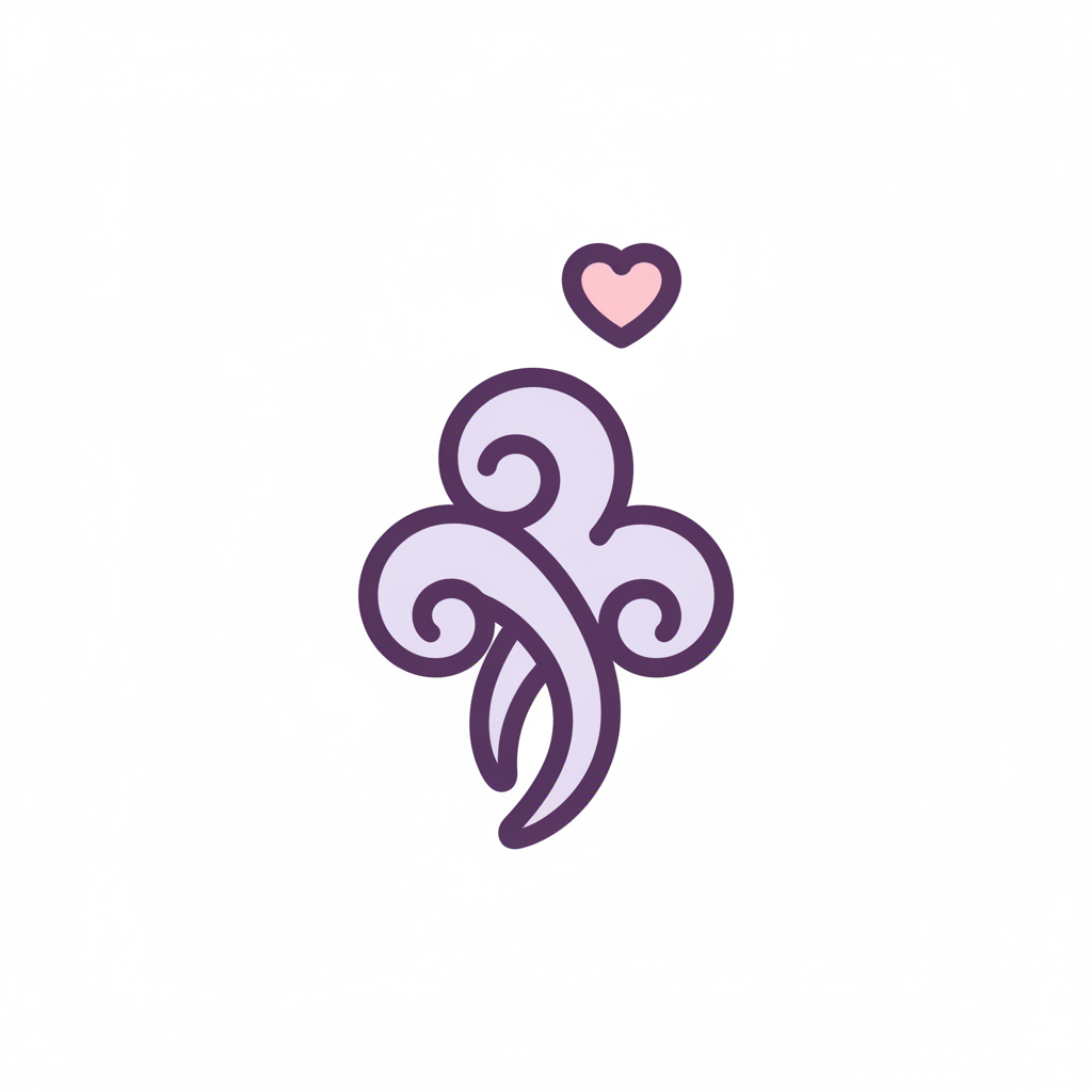 Stilisierte lila Rauchwolke mit rosa Herz darüber, auf weißem Hintergrund.