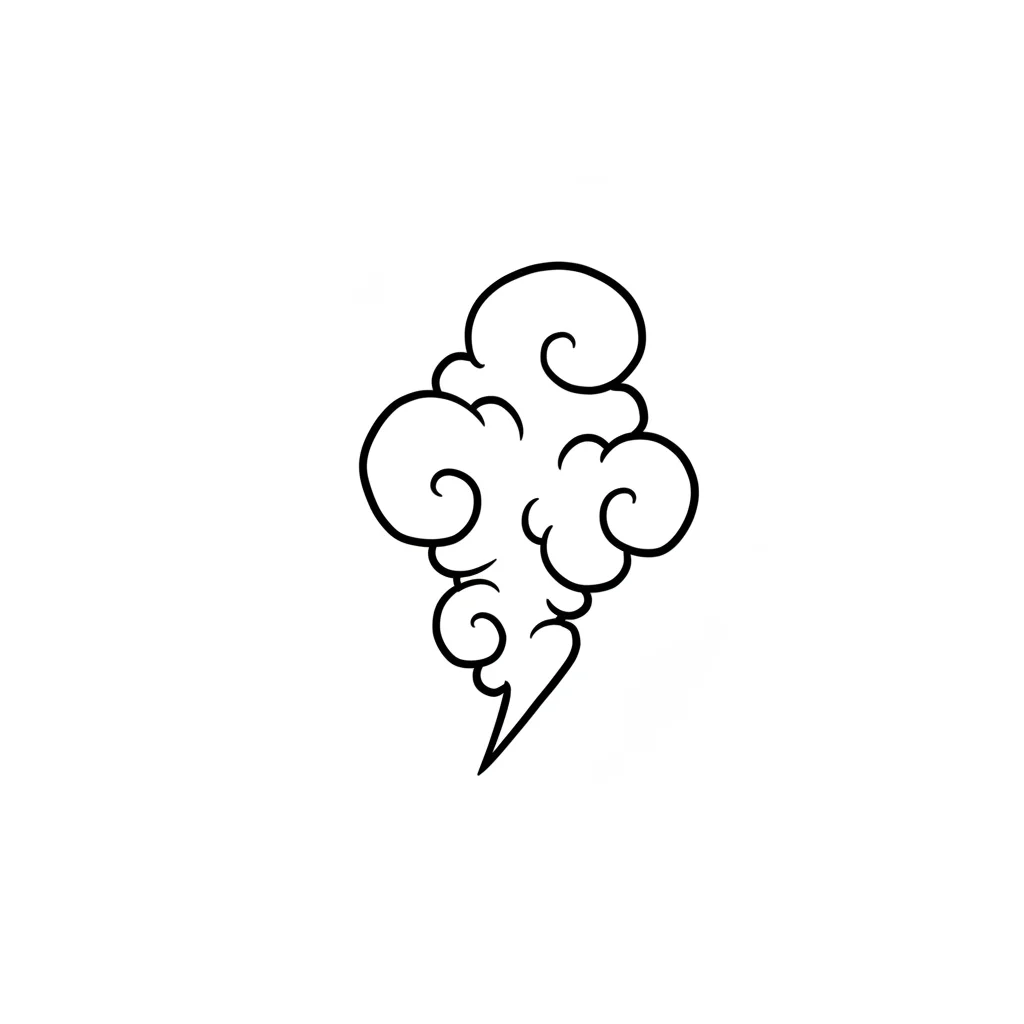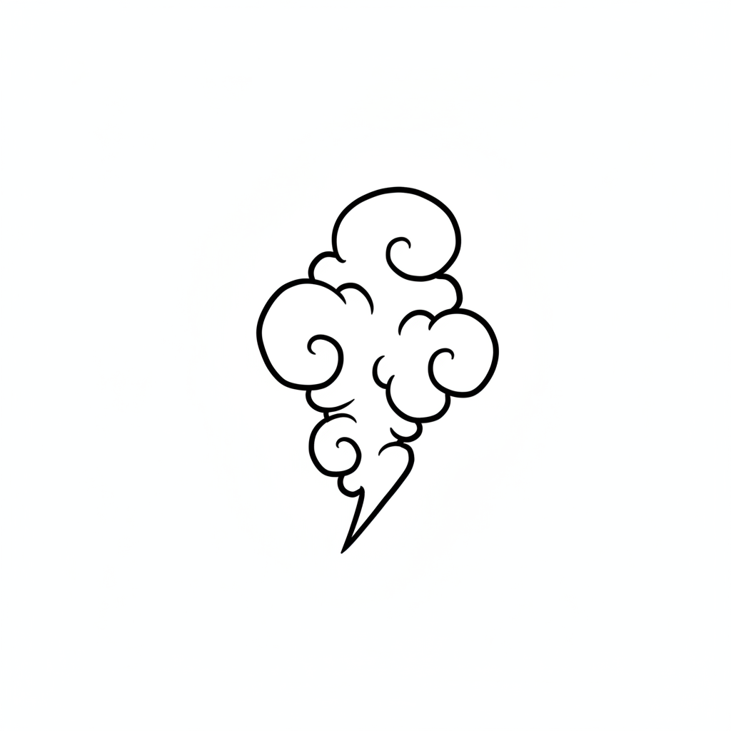 Schwarz-weiße Illustration einer stilisierten Wolke mit Wirbeln, erinnert an asiatische Kunst.