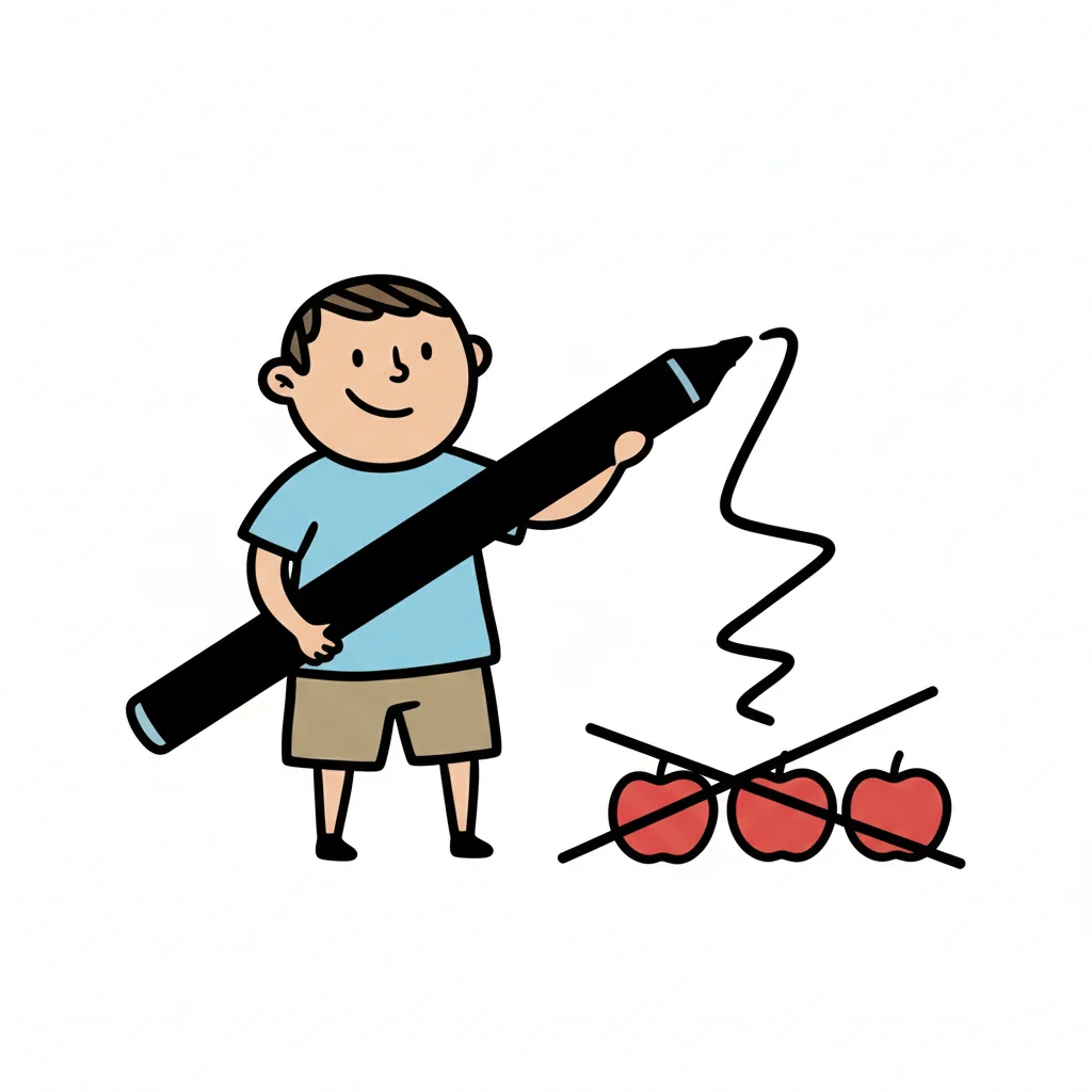 Ein Junge zeichnet mit einem dicken Marker über Äpfel.