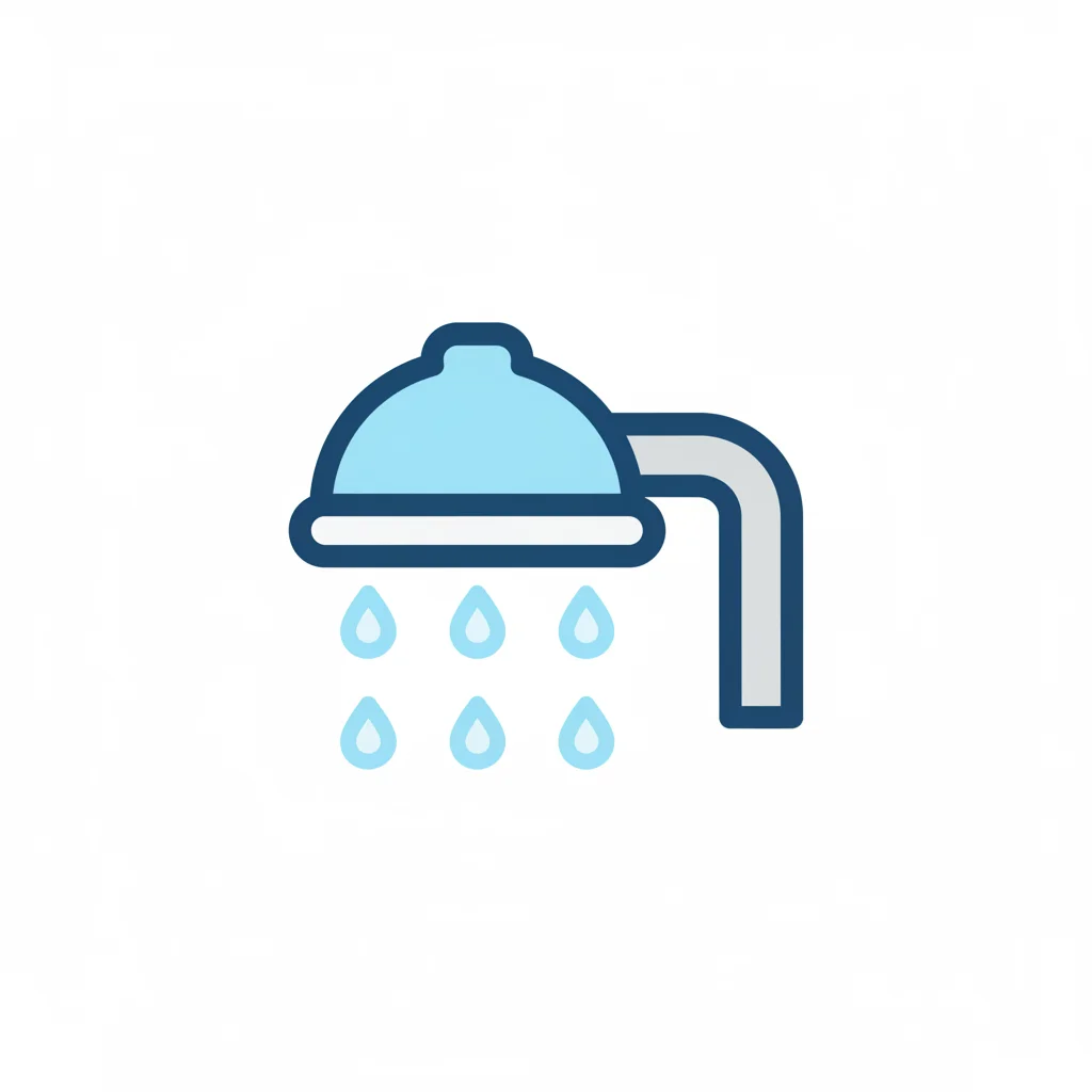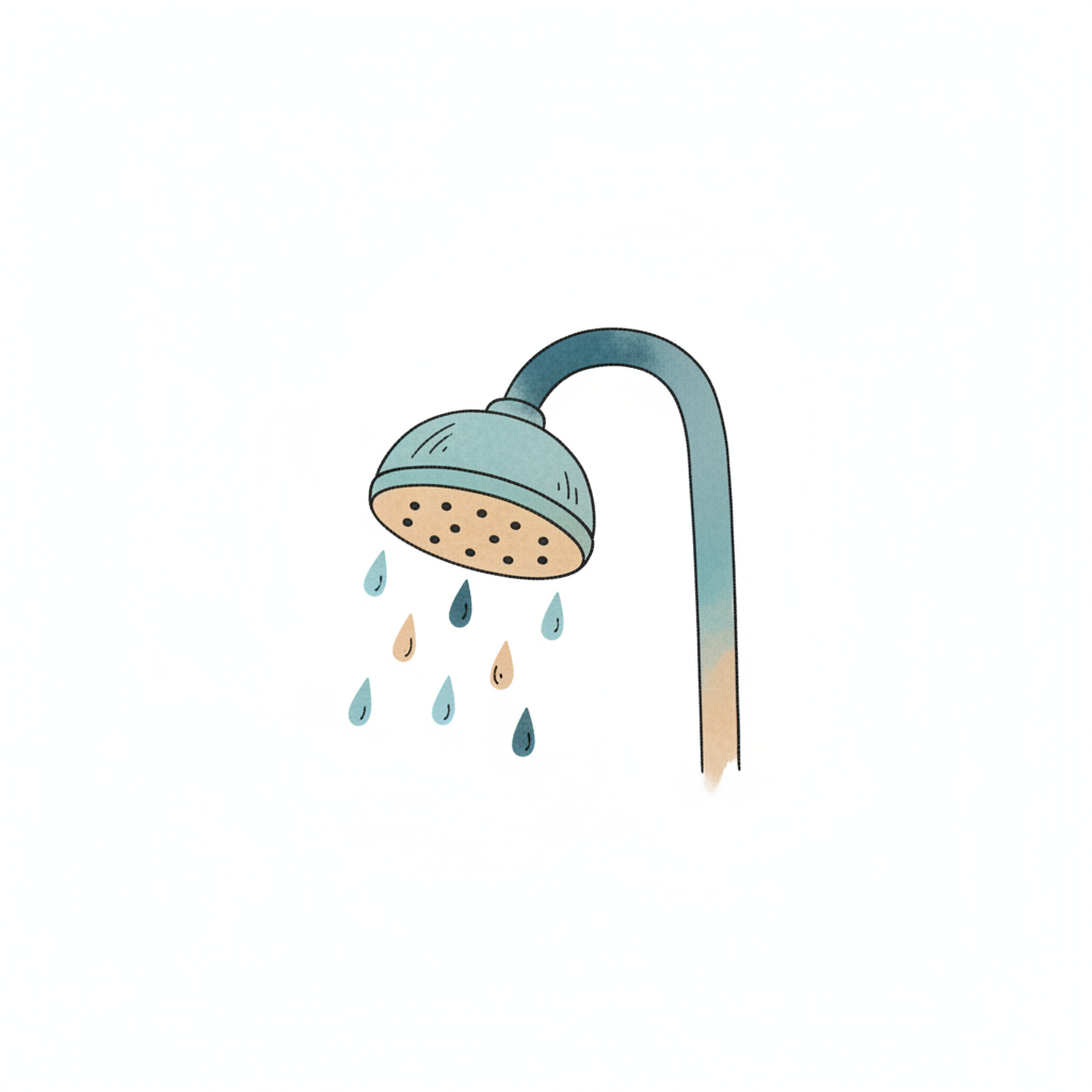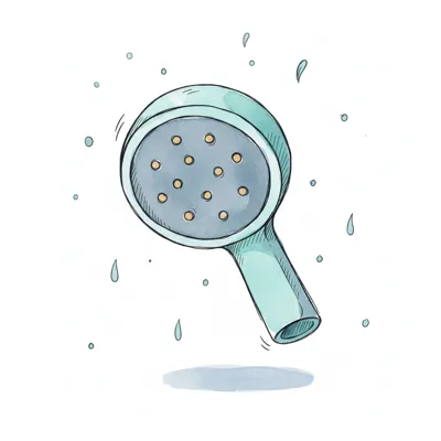Illustration eines Duschkopfs mit fallenden Wassertropfen in Aquarell-Optik.