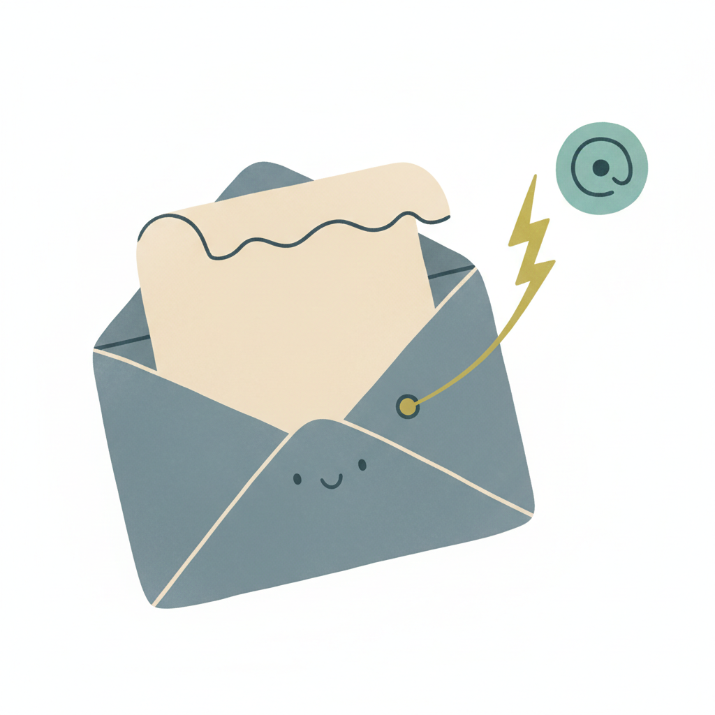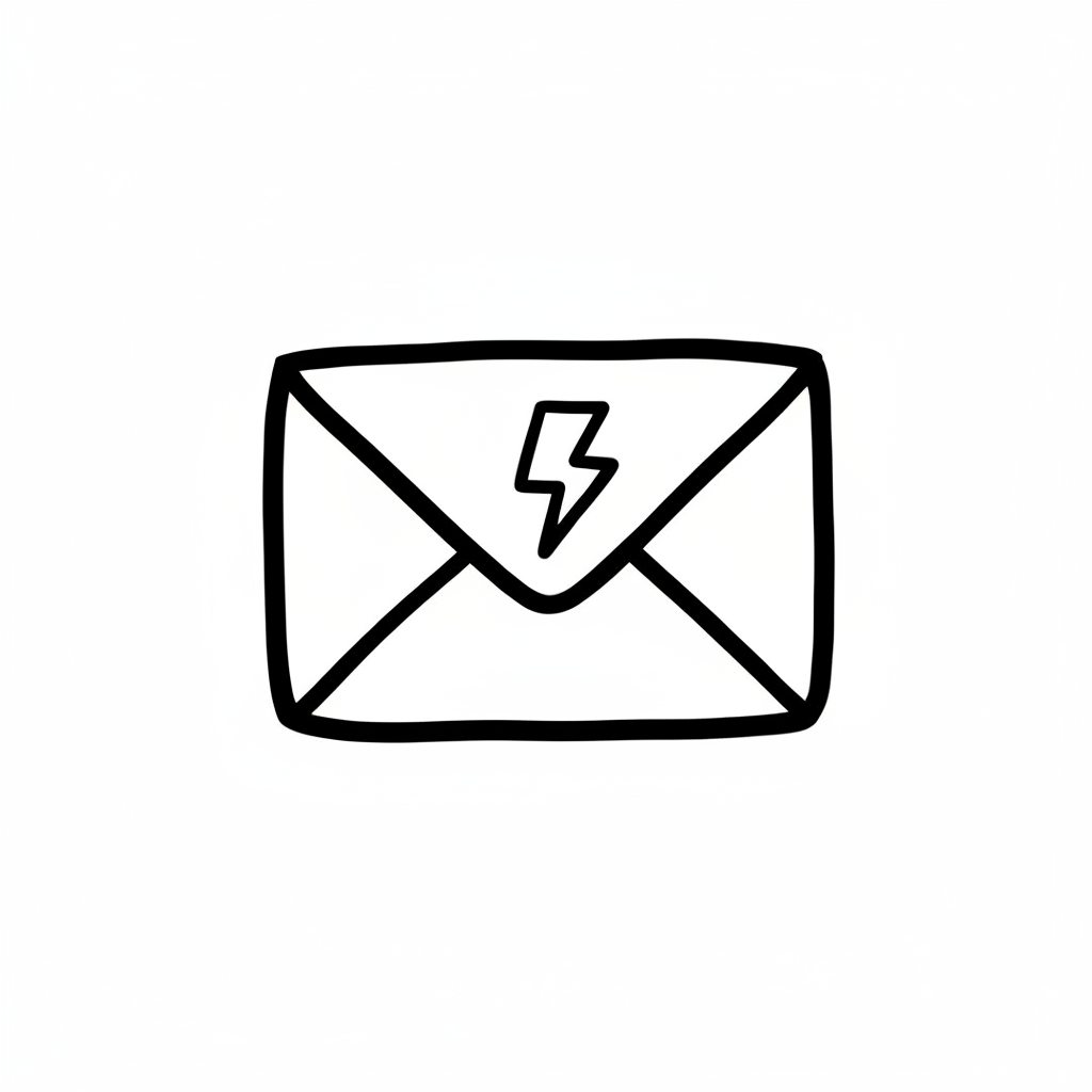 Handgezeichnetes Icon eines Briefumschlags mit Blitzsymbol auf weißem Hintergrund.