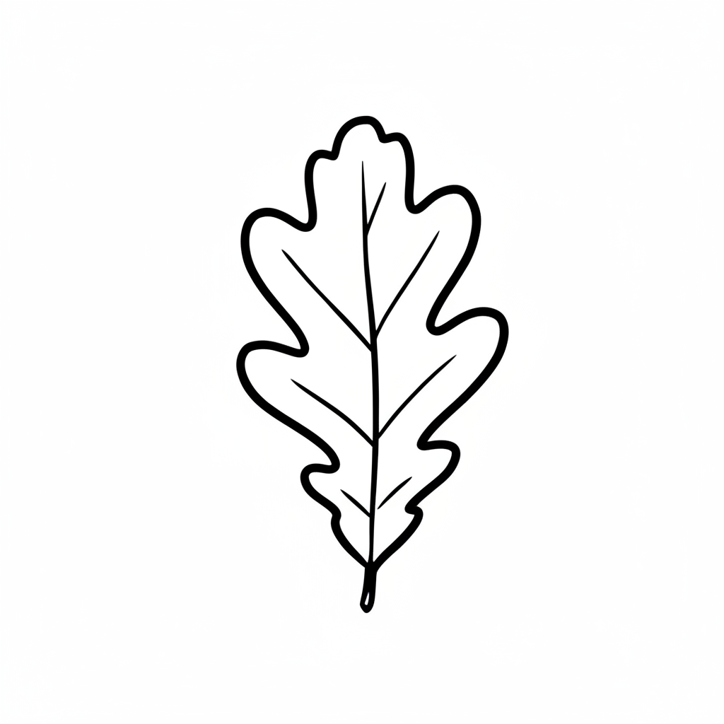 Schwarz-weiße Strichzeichnung eines Eichenblattes mit charakteristischen Lappen auf weißem Grund.