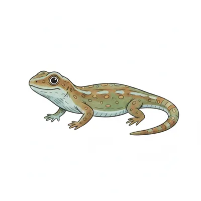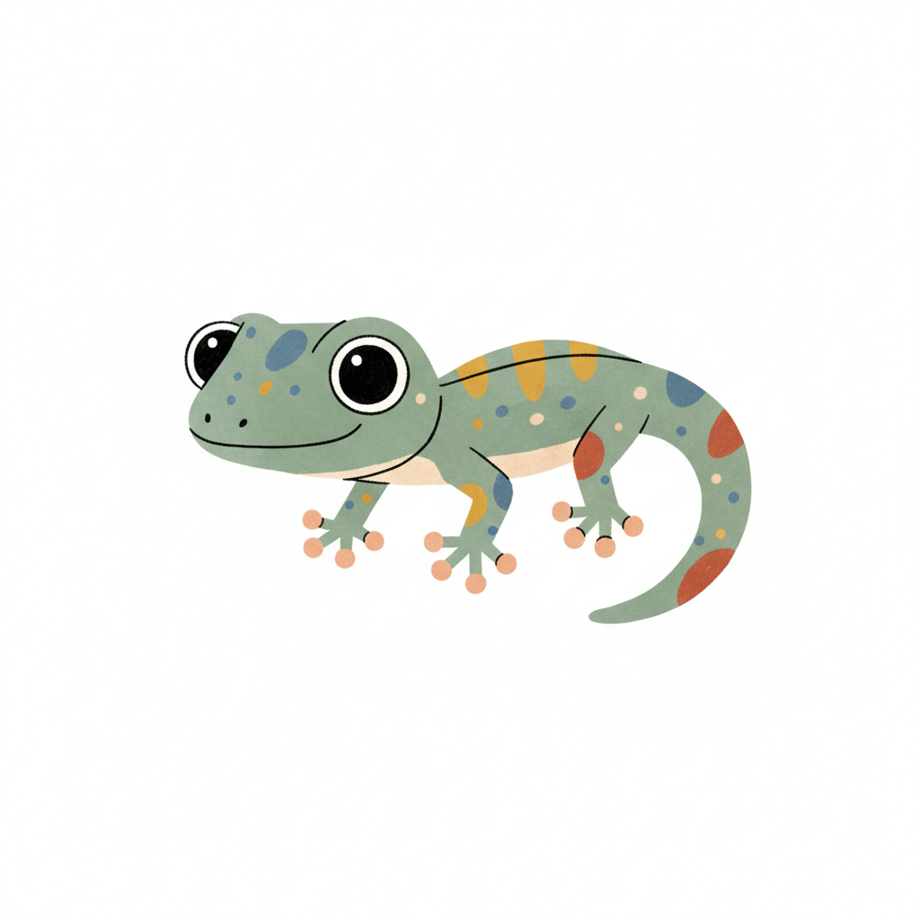 Eine niedliche, cartoonartige Eidechse mit bunten Punkten.