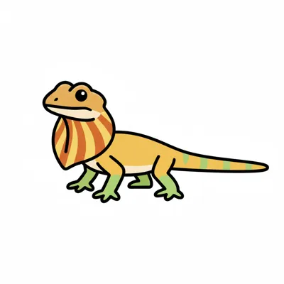 Eine illustrierte Eidechse mit buntem Körper und charakteristischem Kopf.