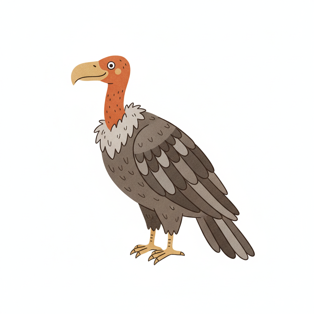 Eine cartoonhafte Darstellung eines Geiers mit buntem Gefieder.