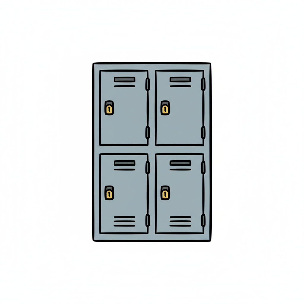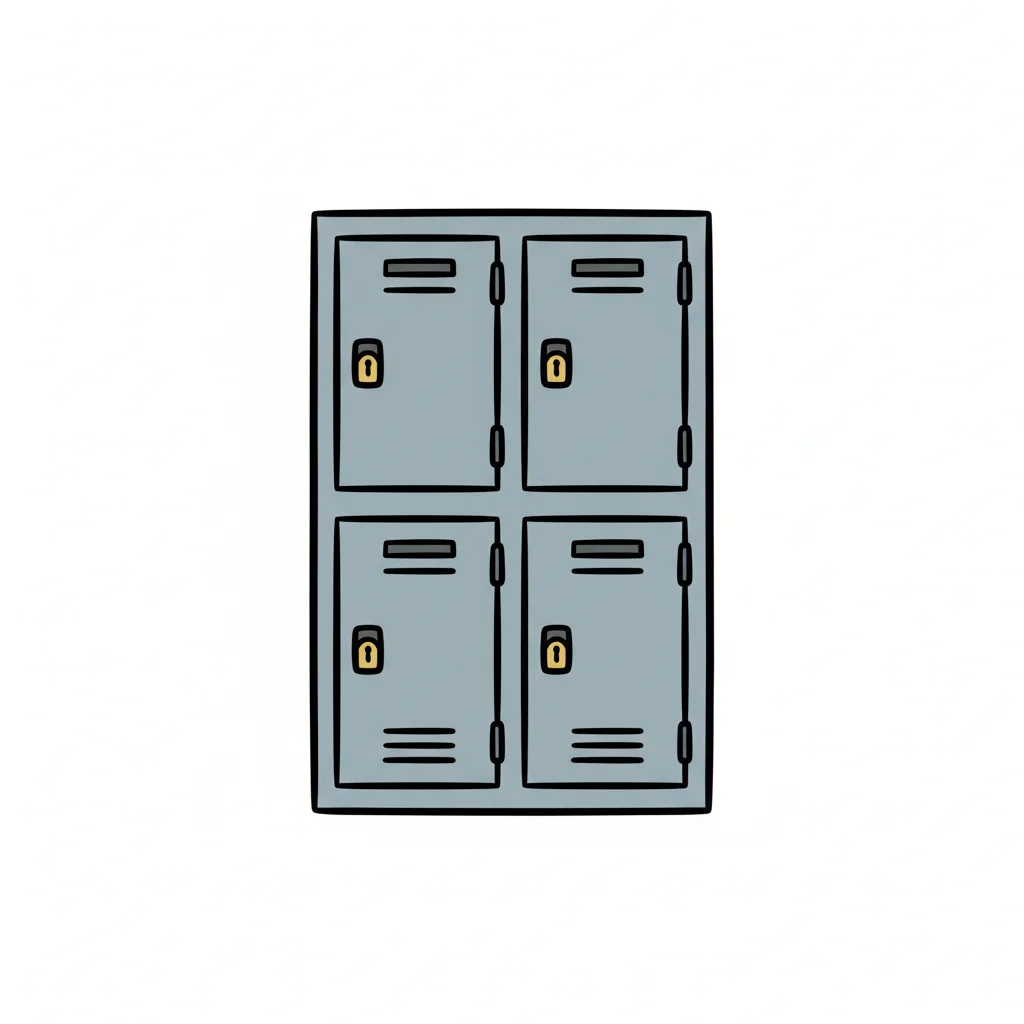 Eine Zeichnung von vier Schließfächern in grauer Farbe.