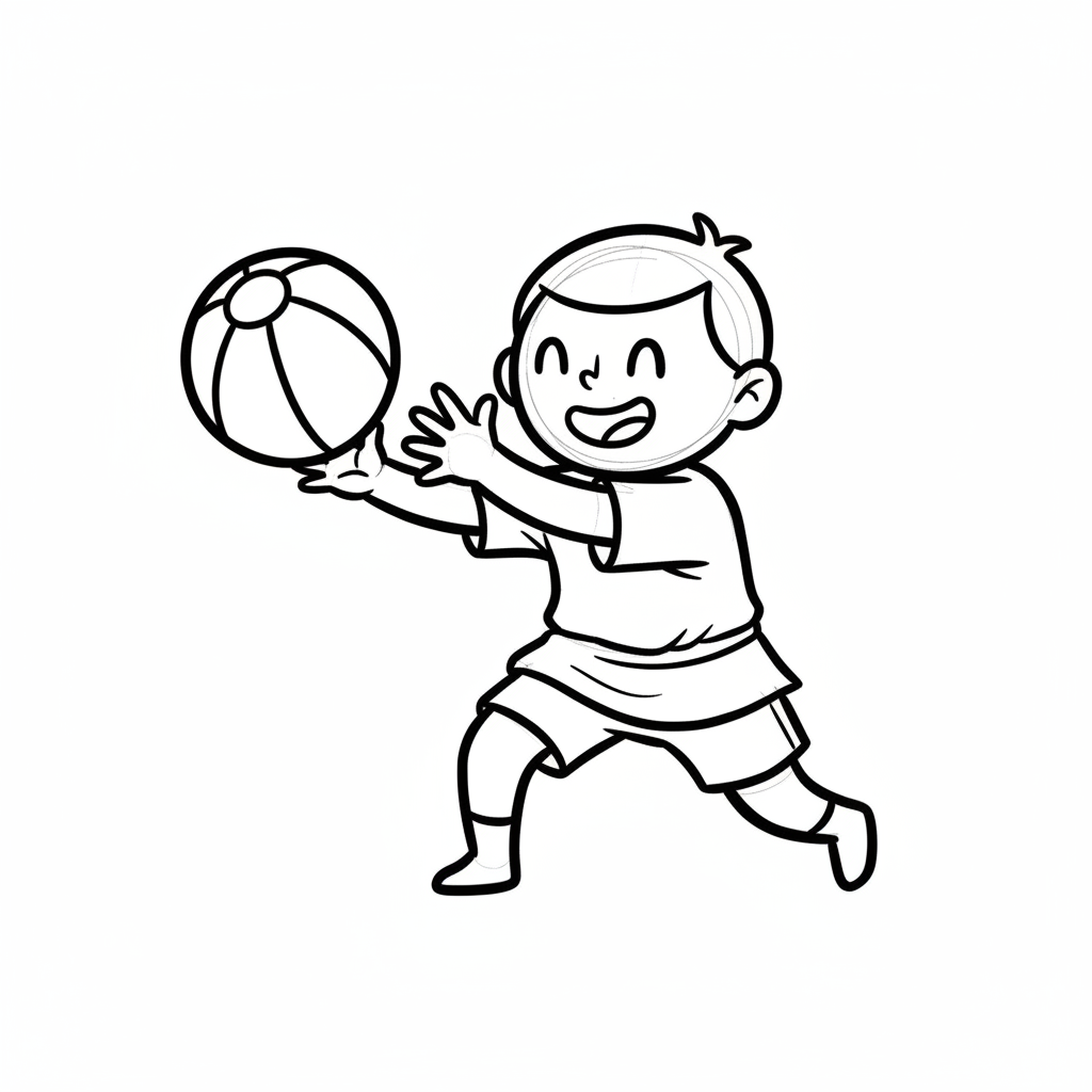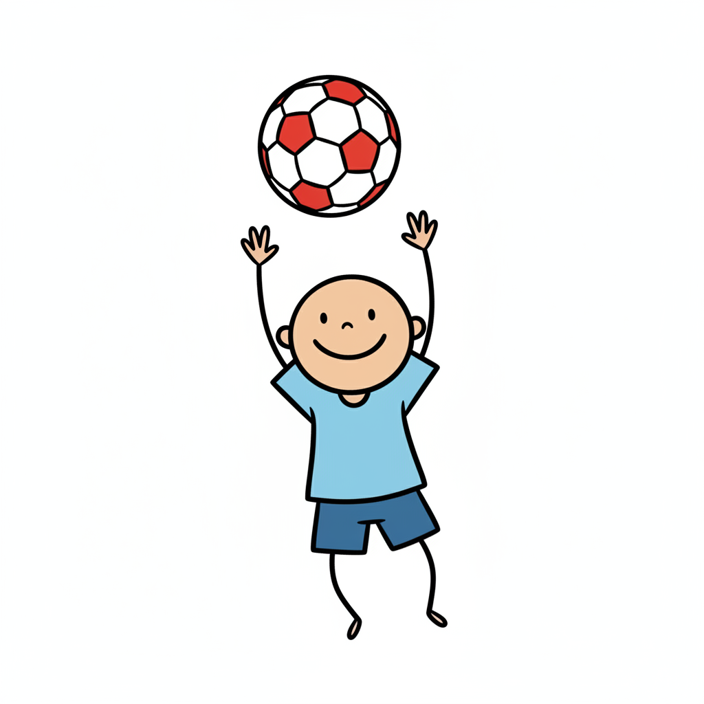 Minimalistische, handgzeichnete Illustration mit deutlich handgezeichneter Wirkung. Handgezeichnete Schwarze Konturen ungleichmäßig und unregelmäßig von Hand gezeichnet. Figuren werden mit stark vereinfachten Körperformen dargestellt. Arme und Beine sind nur als einfache Linien oder Strichformen angedeutet. Flächige Farben ohne Verläufe oder Texturen, ruhige harmonische Farbpalette und reduzierte Details sorgen für eine klare, kindgerechte Darstellung. Saubere, übersichtliche Komposition mit rein weißem Hintergrund.