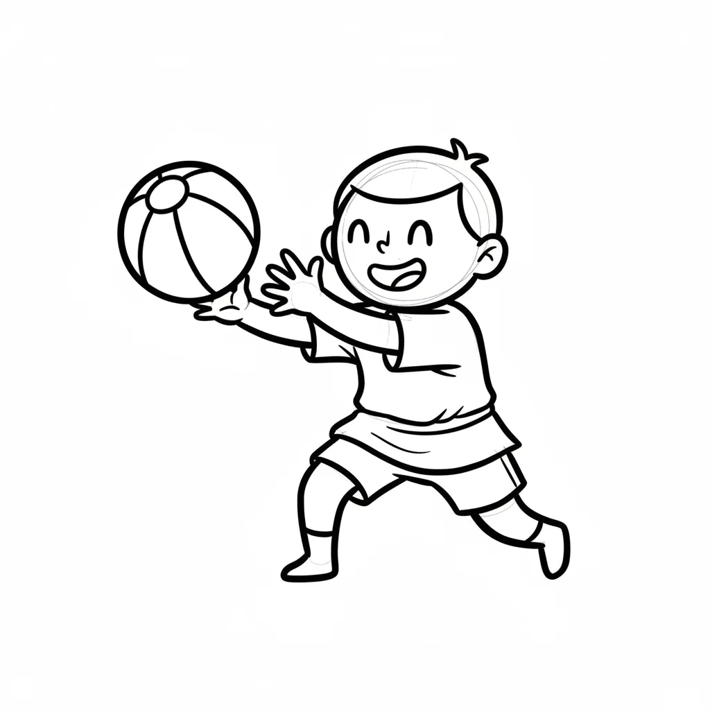 Ein Junge läuft mit einem gestreiften Ball in der Hand.