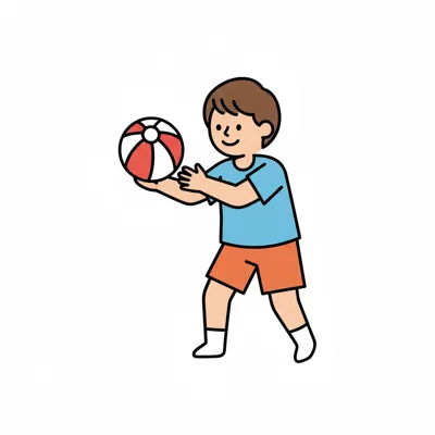 Ein Junge spielt mit einem bunten Ball.