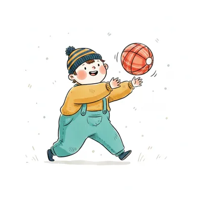 Ein Junge mit Mütze spielt fröhlich mit einem Ball.