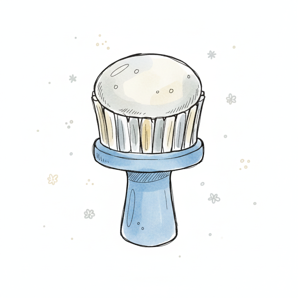 Illustration einer blauen Reinigungsbürste mit weißem Schaum auf den Borsten.