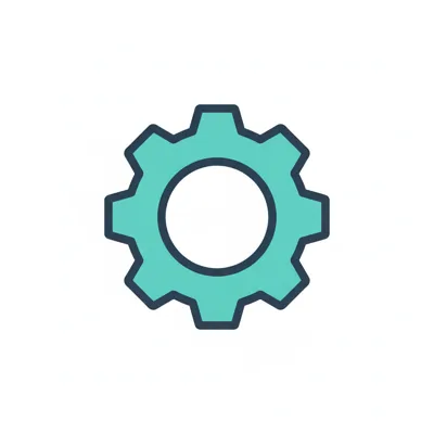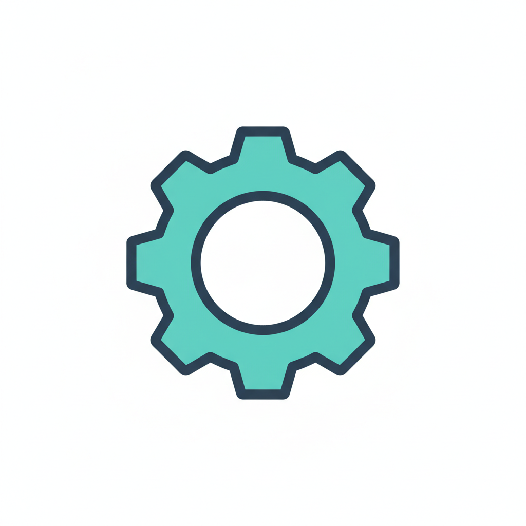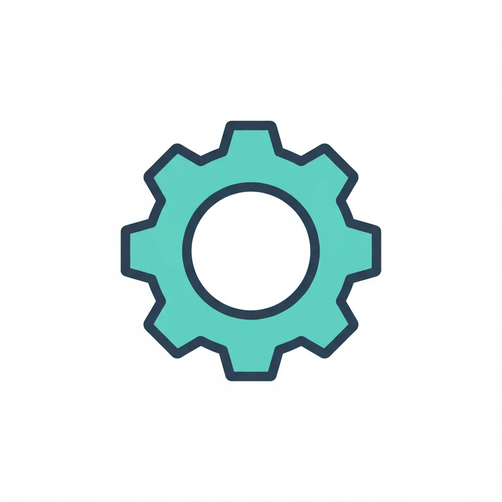 Einfaches, teal-farbenes Zahnrad-Icon mit dunklem Rand auf weißem Hintergrund.