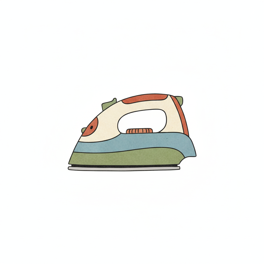 Bunte, stilisierte Darstellung eines Bügeleisens auf weißem Hintergrund.