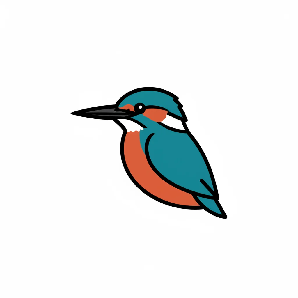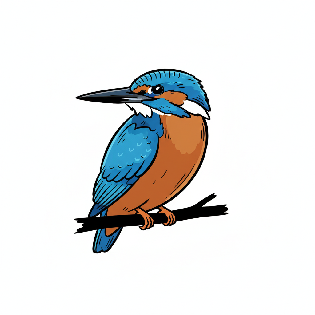 Bunter Eisvogel mit orange-blauer Farbgebung auf weißem Hintergrund.