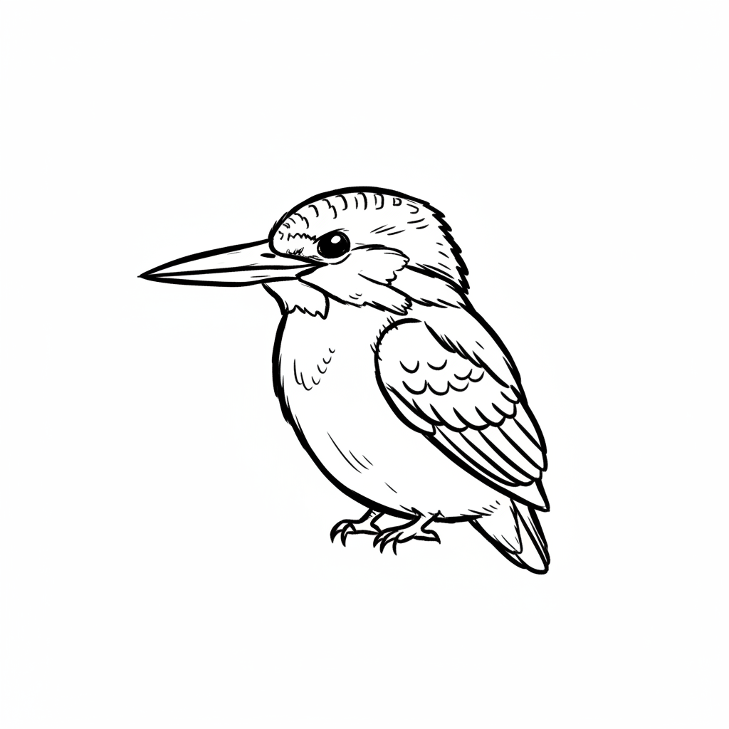 Ein skizzenhaft gezeichneter Fischreiher mit auffälligem Schnabel.