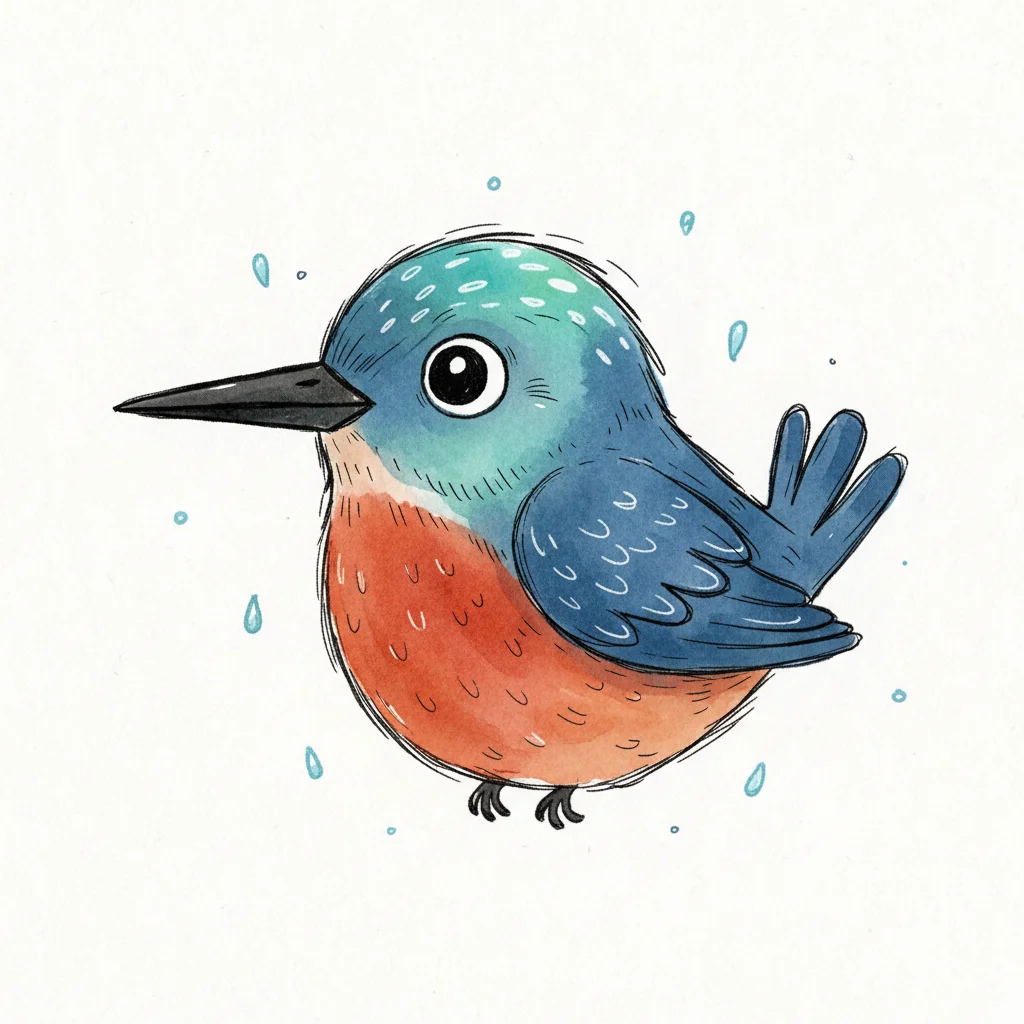 Niedliche, kindgerecht illustrierte Szene mit einem Kind oder einer Person als Hauptfigur, vor rein weißem Hintergrund, im frech-nordischen Aquarell-Skizzenstil. Klare, leicht wackelige Tuschekonturen, sichtbare Pinsel- und Strichtextur, dezente Schraffuren, weiche handgemalte Farbflächen in gedeckten Farben. Einfache, runde Formen. Keine harten Schatten, sondern sanfte, transparente Aquarellschichten. Leicht raue, handgezeichnete Linien statt glatter Vektorkanten. Subtile, vereinzelte Kritzelpunkte oder kleine Details im Hintergrund (wie Pünktchen oder feine Striche), aber keine echte Umgebung oder Landschaft. Die Figur ist mittig zentriert. Insgesamt charmant, humorvoll, warm und handgemacht wirkend. WICHTIG: Das Bild darf ABSOLUT KEINEN TEXT, KEINE BUCHSTABEN und KEINE ZAHLEN enthalten.
