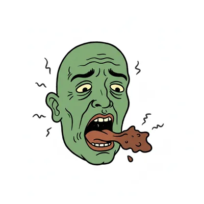 Eine grünliche Figur mit weit geöffnetem Mund und Würgereflex.
