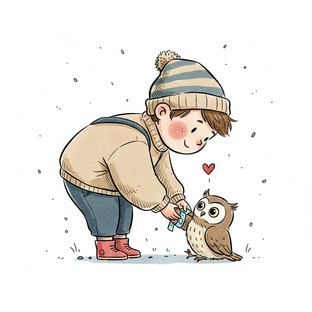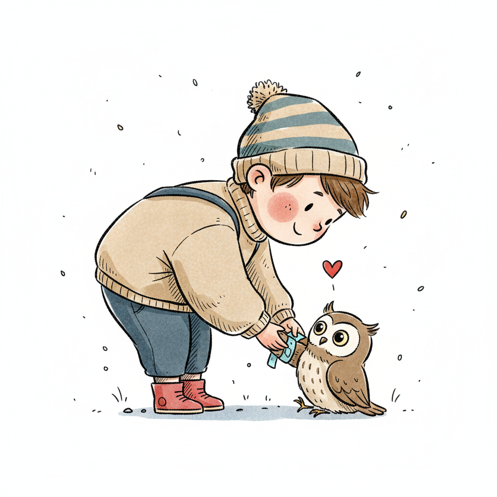 Ein Junge füttert eine Eule mit Liebe und Freude.