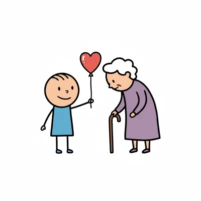 Ein Kind schenkt einer älteren Frau einen Herzballon.