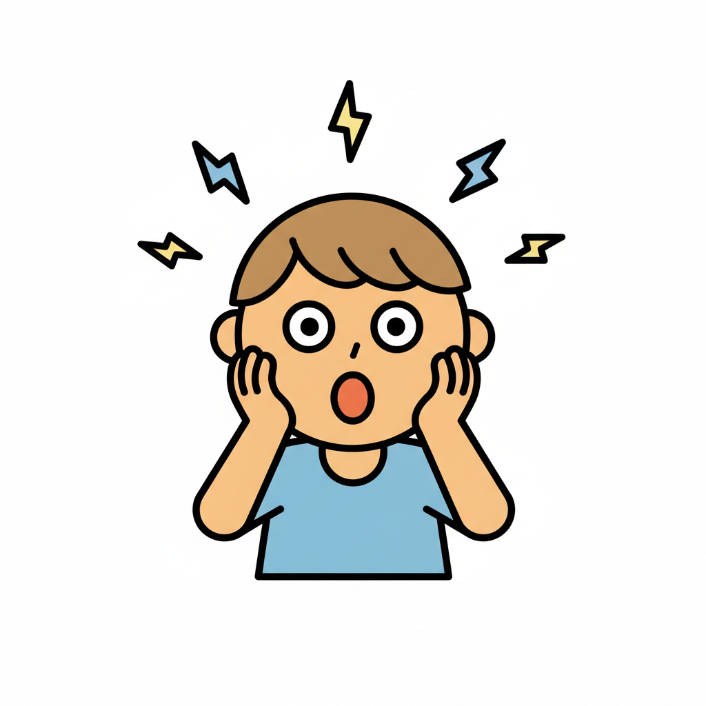 Junge mit überrascht schockiertem Gesichtsausdruck und Schallwellen.