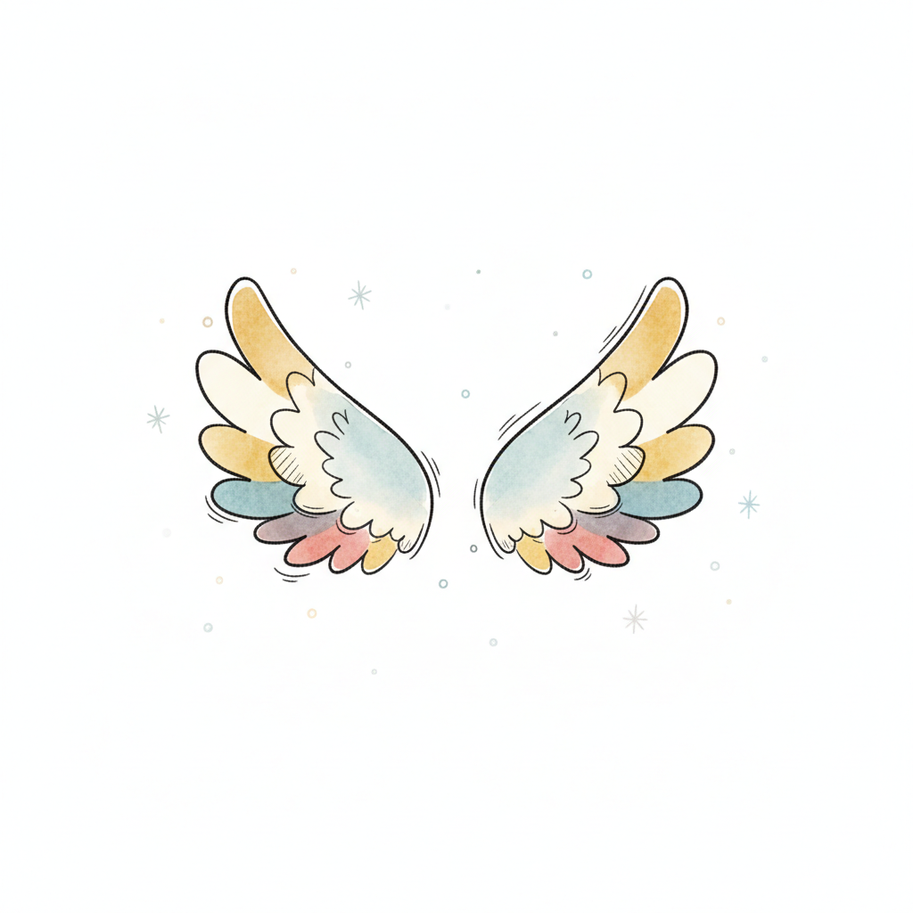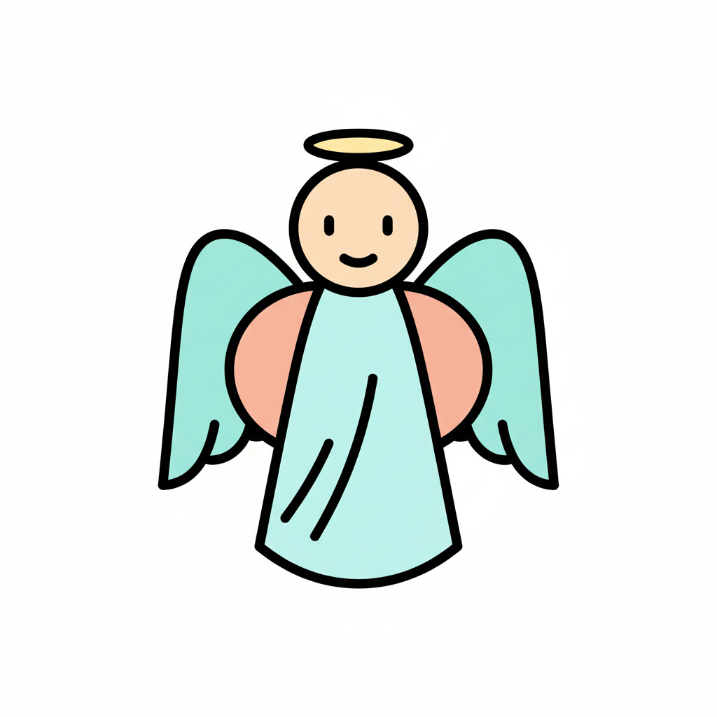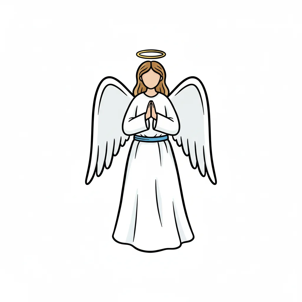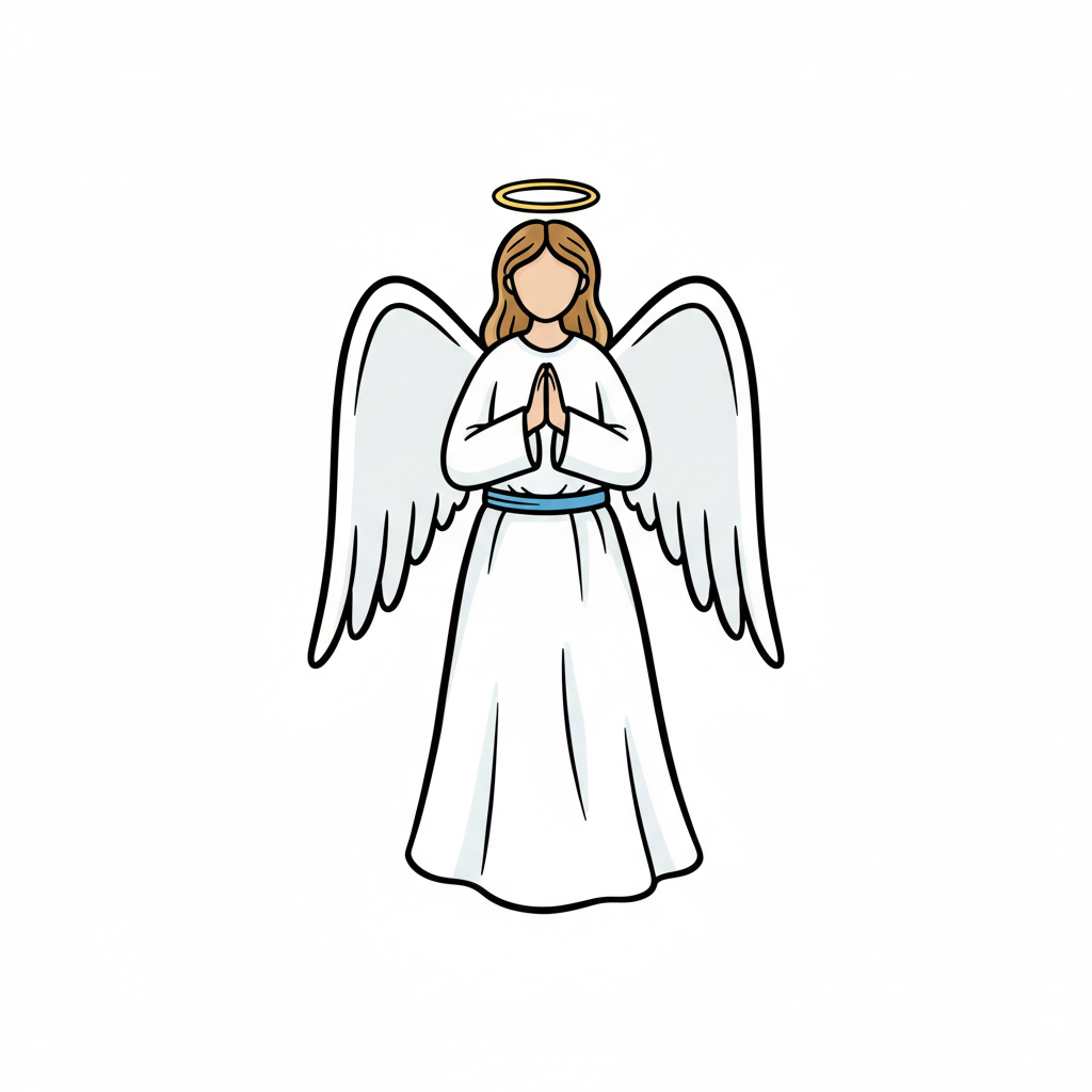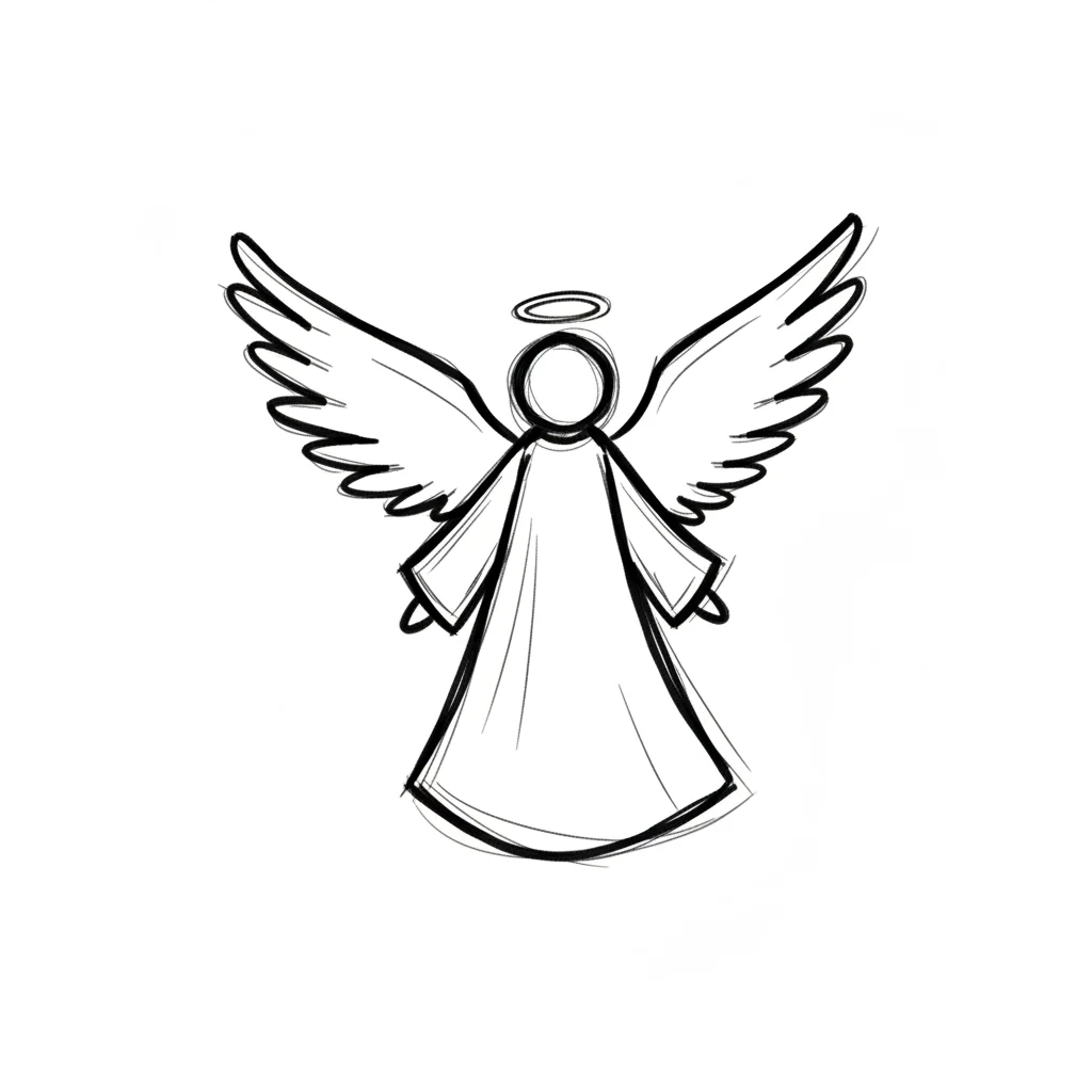 Ein skizziertes Bild eines Engels mit Flügeln und Heiligenschein.