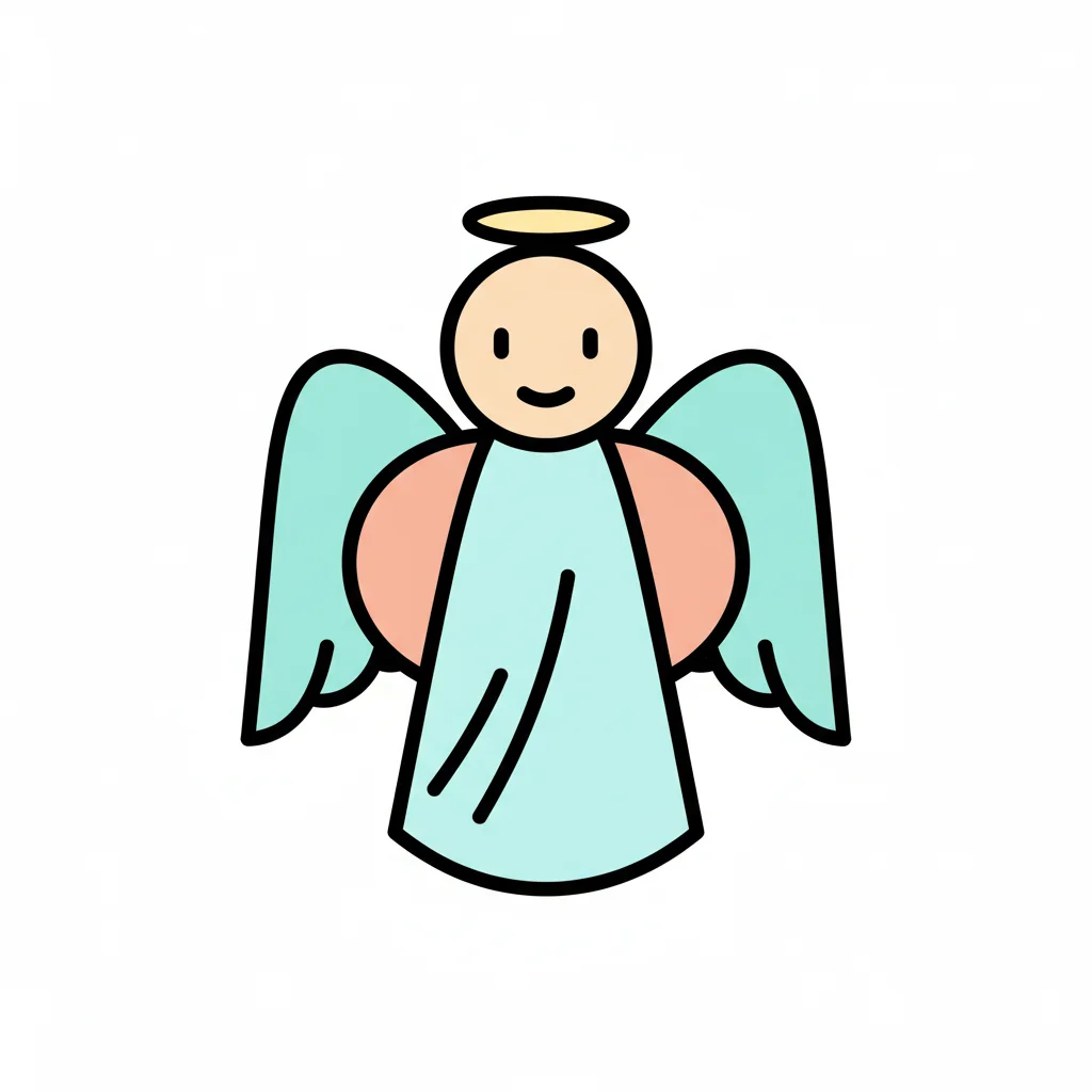 Ein lächelnder Engel mit Heiligenschein und farbigen Flügeln.