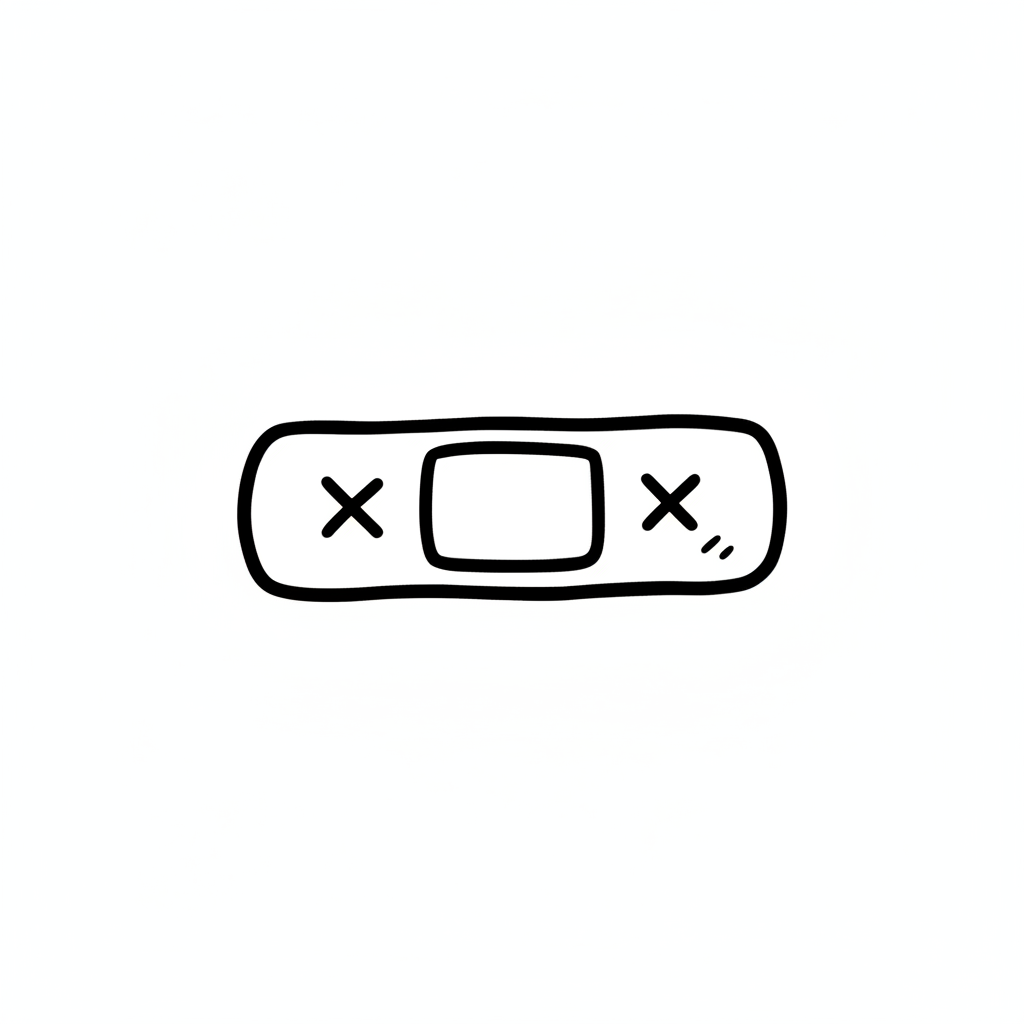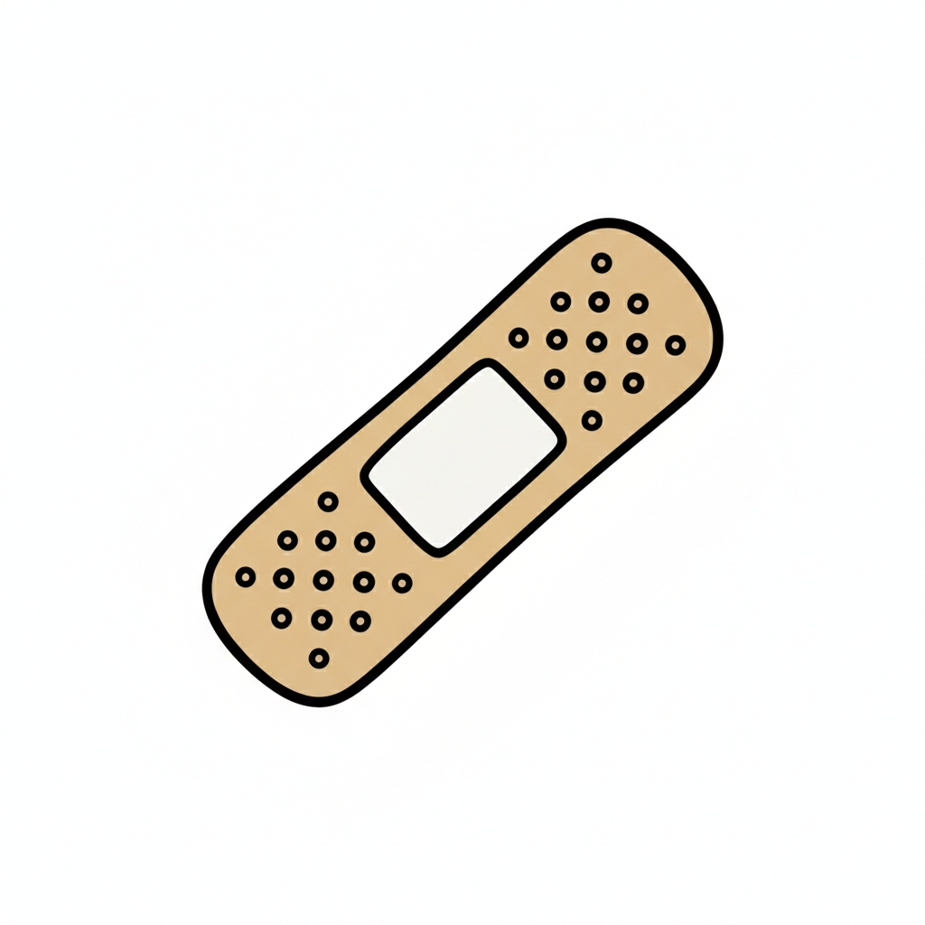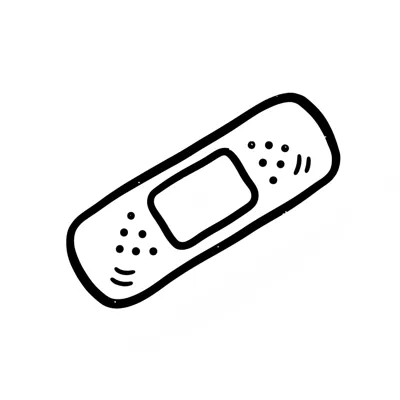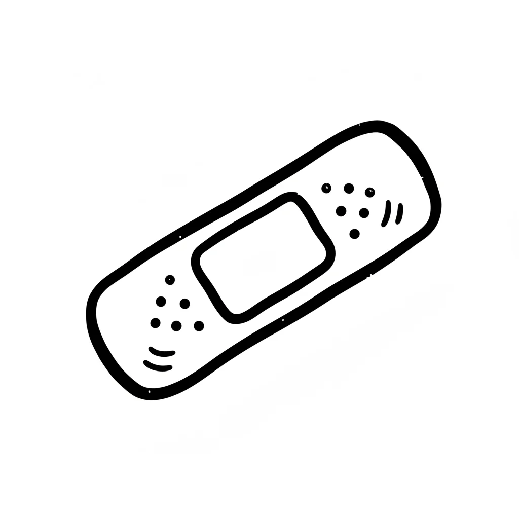 Schwarz-weiße, handgezeichnete Illustration eines Pflasters auf weißem Hintergrund.