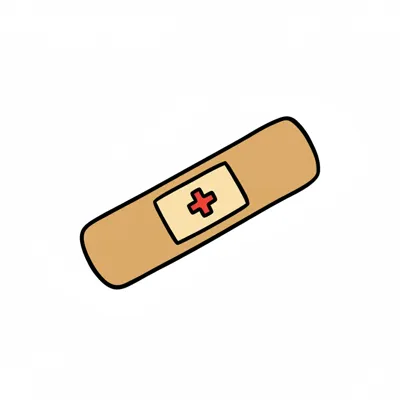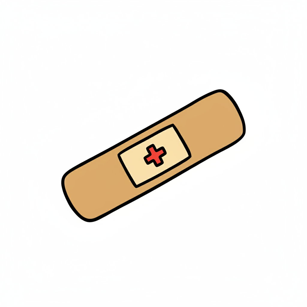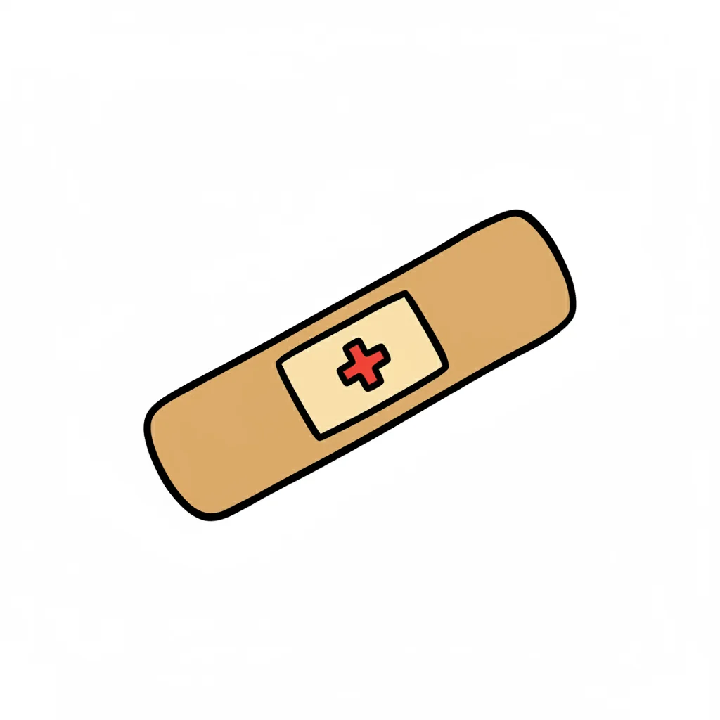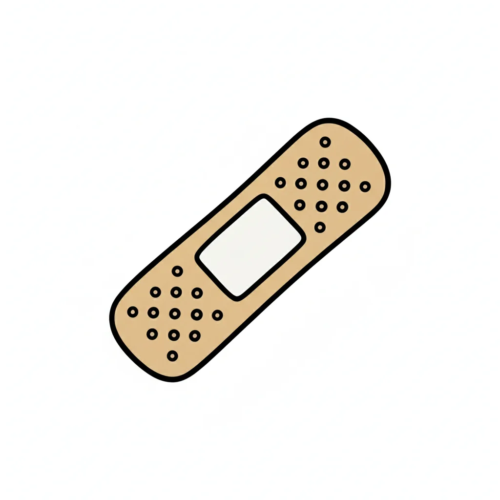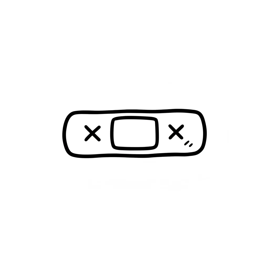 Schwarz-weiße, handgezeichnete Illustration eines Pflasters auf weißem Hintergrund.