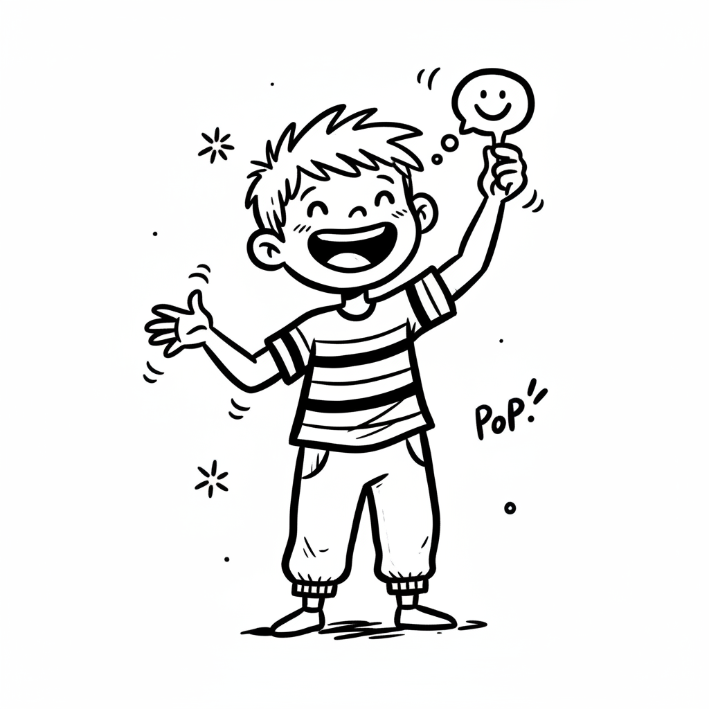 Ein fröhlicher Junge hält einen lächelnden Ballon in der Hand.