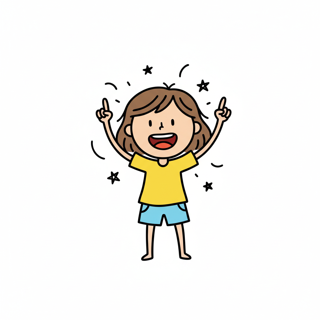 Ein fröhliches Kind zeigt Begeisterung und Freude mit beiden Händen.